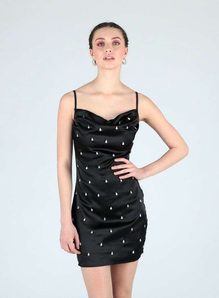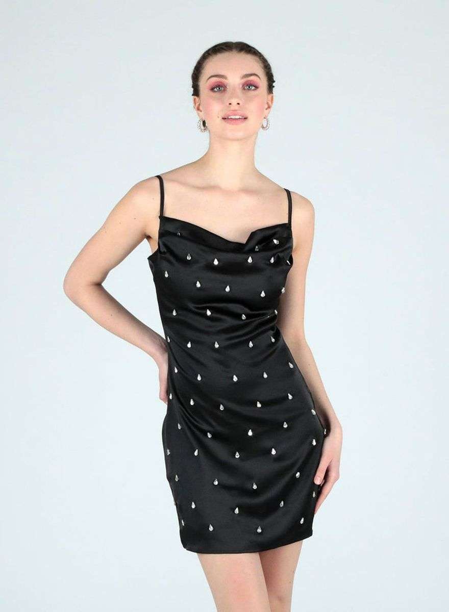 Abito corto a pois argento. Le voliere. Collezione Primavera/Estate 2022.