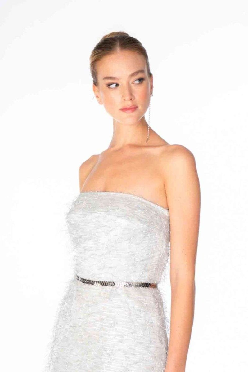 Abito da cerimonia corto con cinturino argento. Siste’s. Collezione Primavera/Estate 2022.