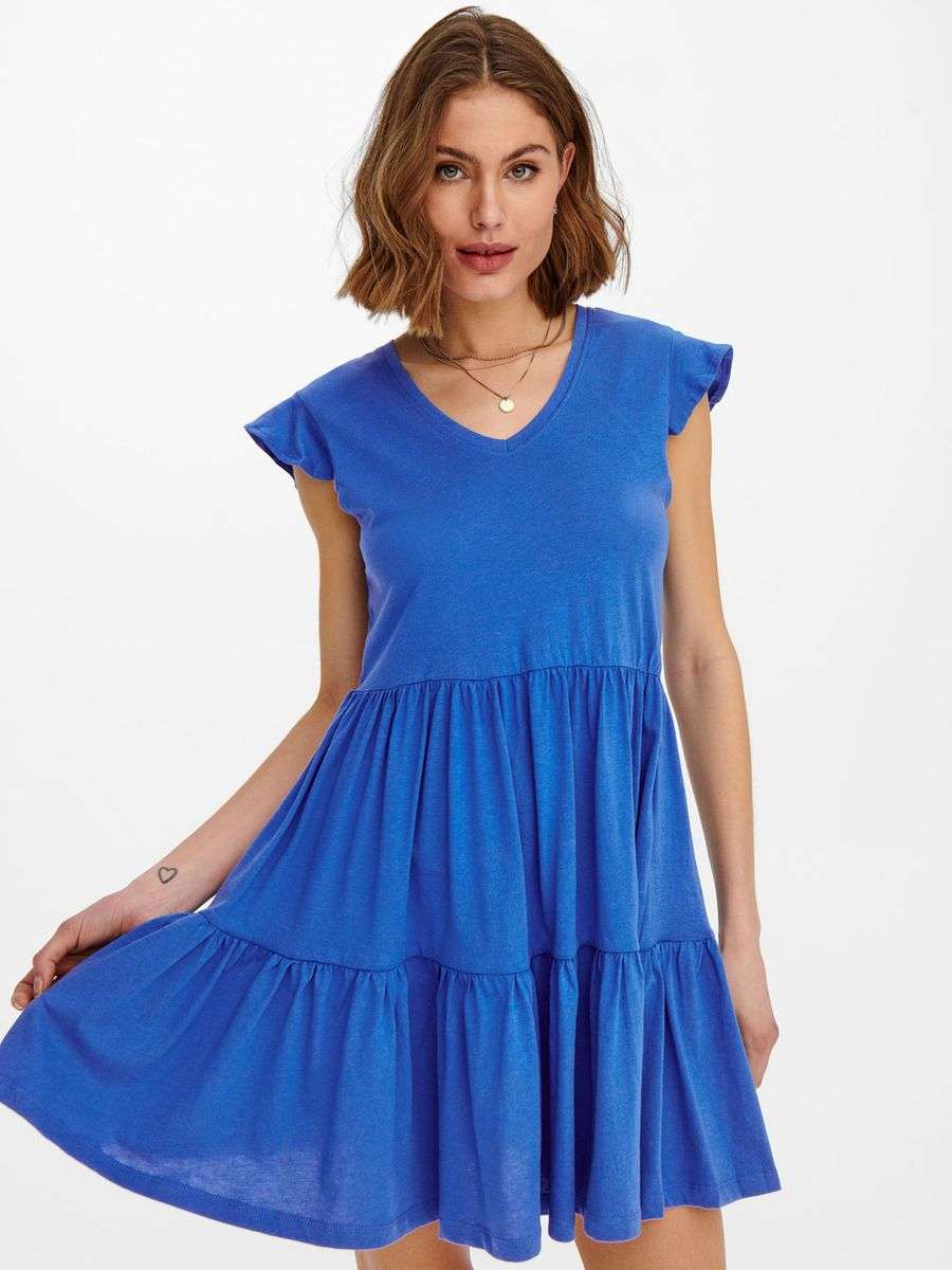 Abito corto con manica volant Only monocolore. Modello ONLMAY FRILL DRESS. Collezione Primavera/Estate 2022.