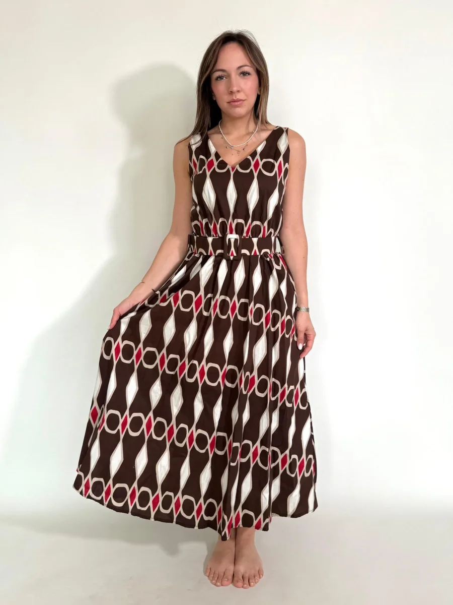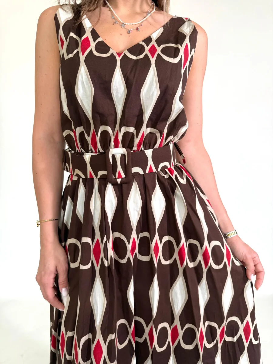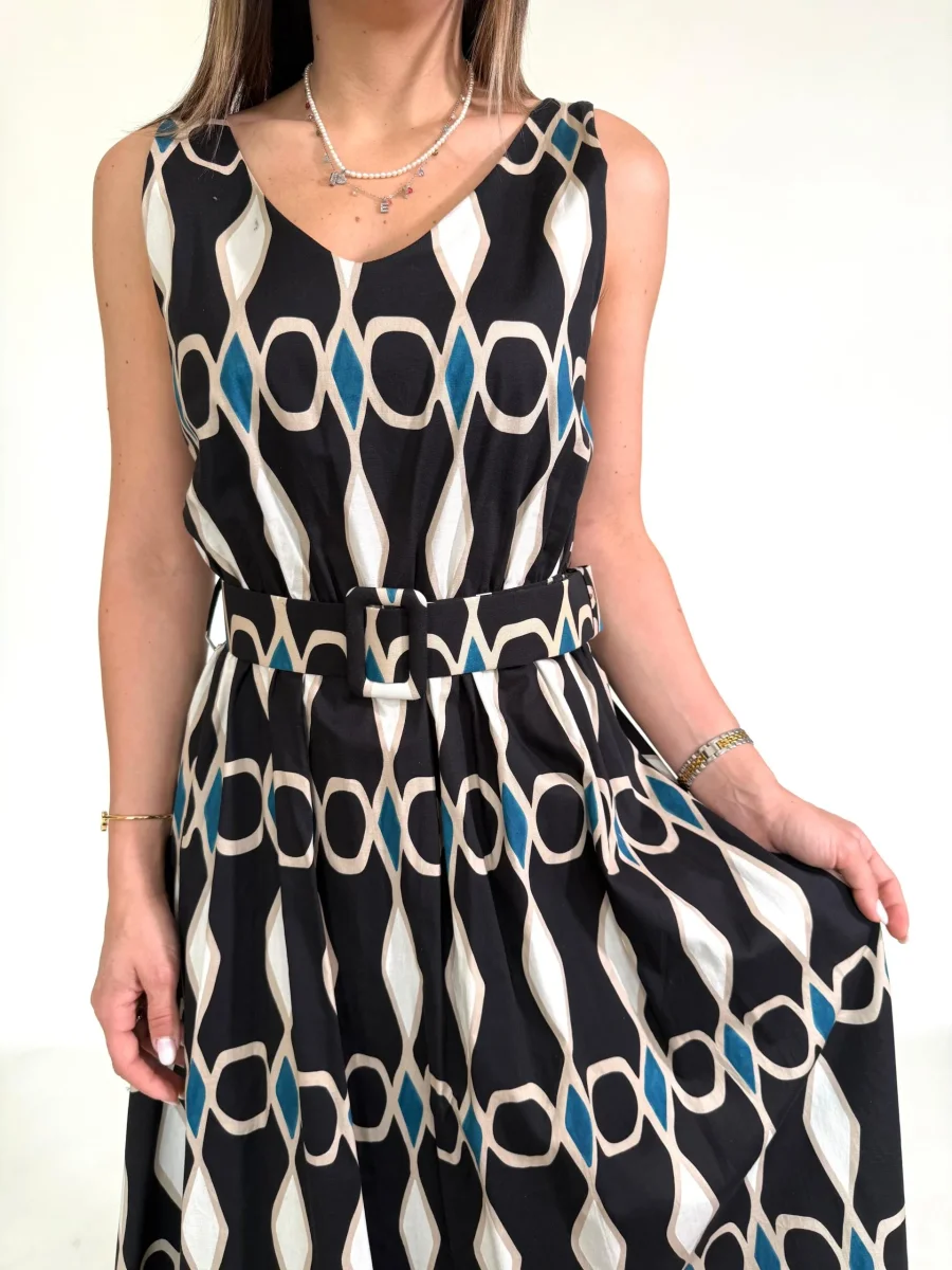 Abito con disegni geometrici e cintura in tinta Taglia unica Giroseno 90 cm Composizione 95%Cotone 5%Elastane MADE ITALY