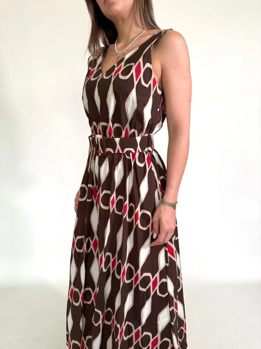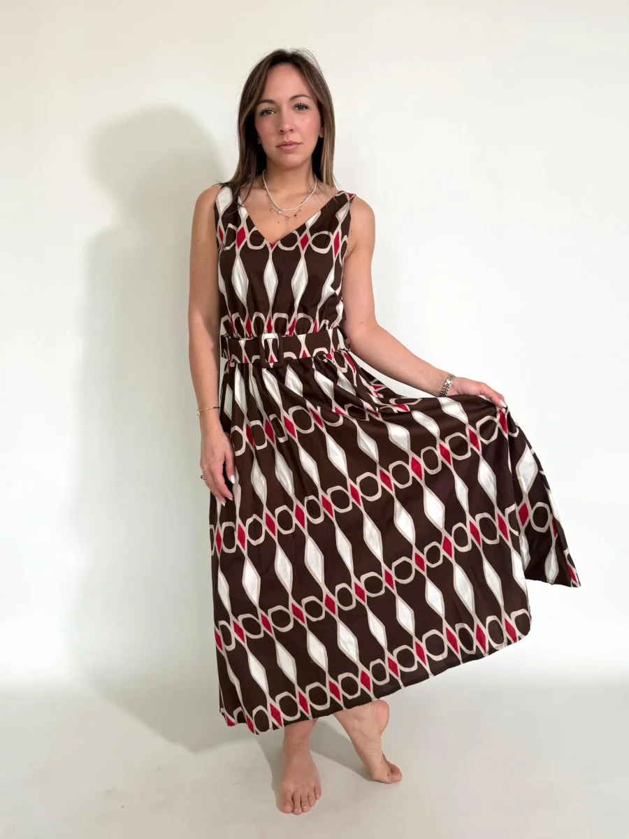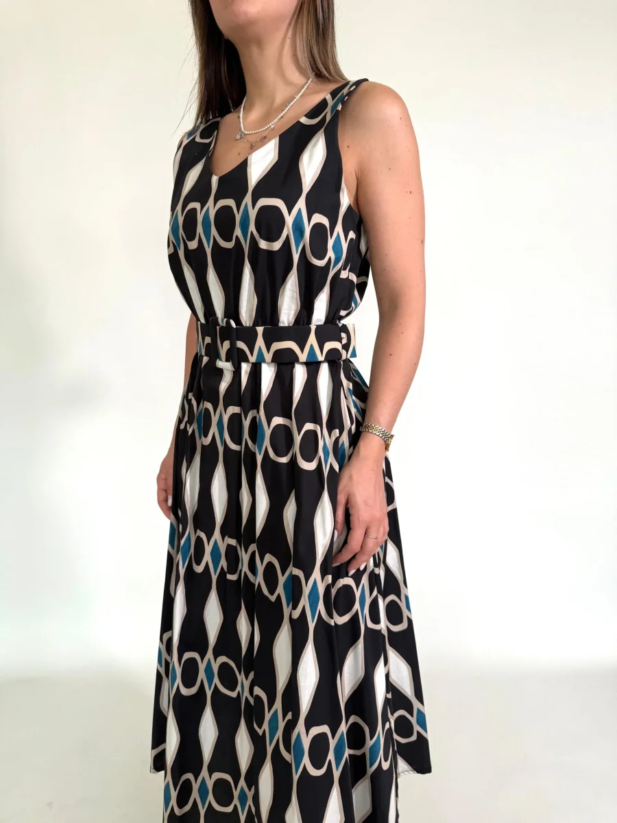 Abito con disegni geometrici e cintura in tinta Taglia unica Giroseno 90 cm Composizione 95%Cotone 5%Elastane MADE ITALY