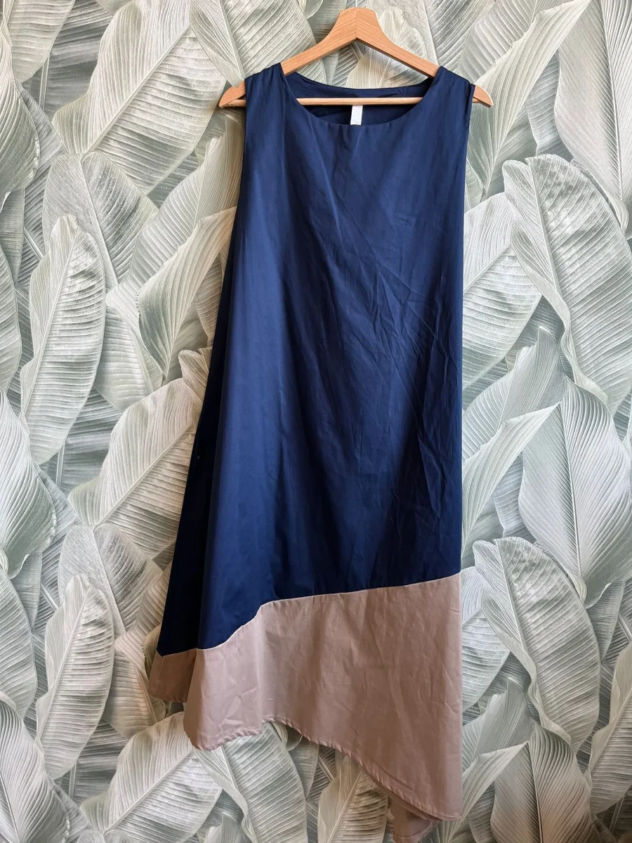 Abito lungo con balza a contrasto e più lungo su un lato Taglia unica Giroseno 94 cm Composizione 95% Cotone 5% Elastane MADE ITALY