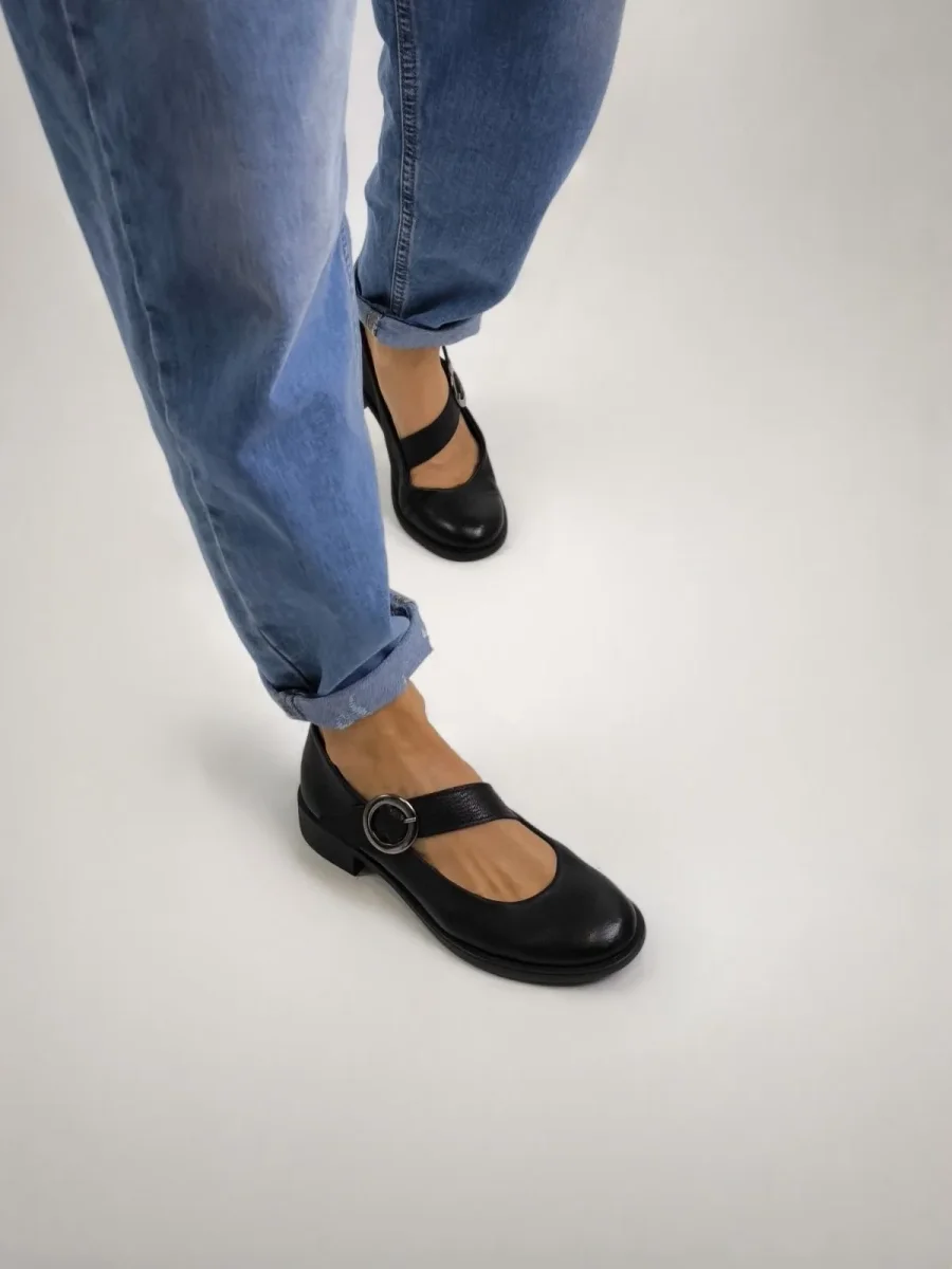 Un classico senza tempo che unisce comfort quotidiano e stile inconfondibile. Questa raffinata scarpa modello Mary Jane è la scelta ideale per chi cerca un’eleganza versatile, perfetta dall’ufficio all’aperitivo. Realizzata in morbida pelle martellata, si distingue per la sua linea pulita, impreziosita da una grande fibbia rotonda argentata che dona un tocco di carattere moderno a un design dal fascino retrò. Il tacco basso e la pianta comoda assicurano una calzata piacevole per tutta la giornata.