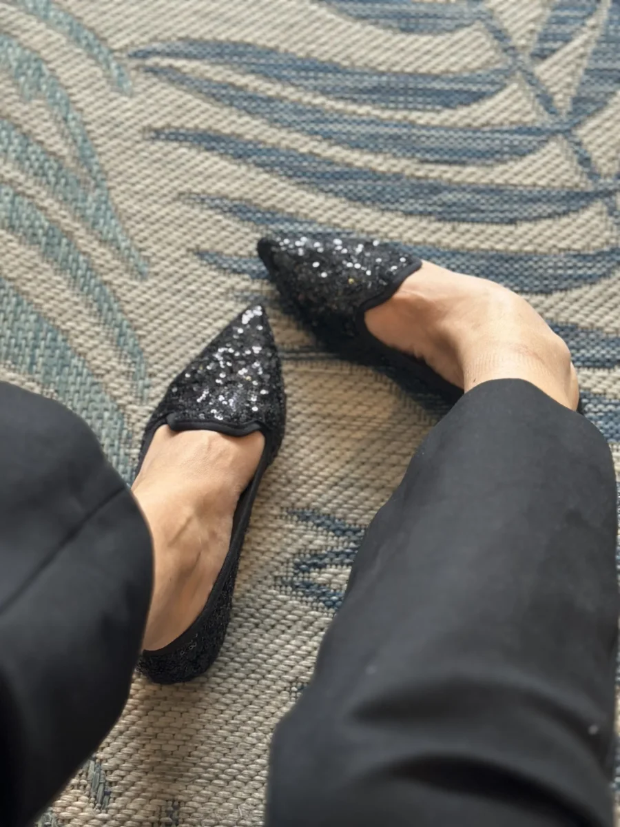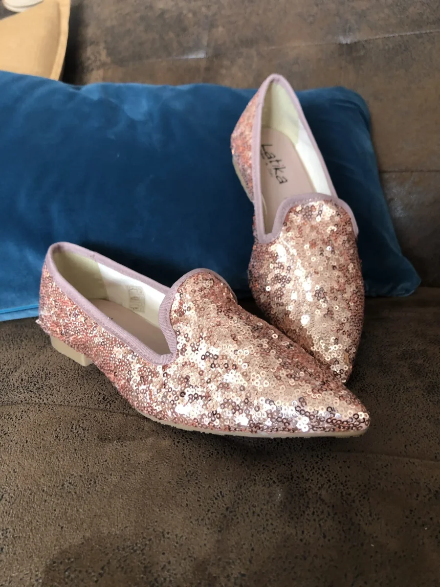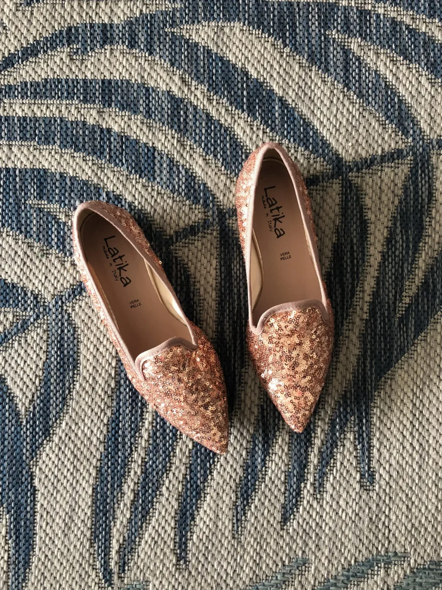 Mocassino ballerina con paillettes rosa-oro Prodotto artigianale, suola interna in vera pelle Calzata regolare