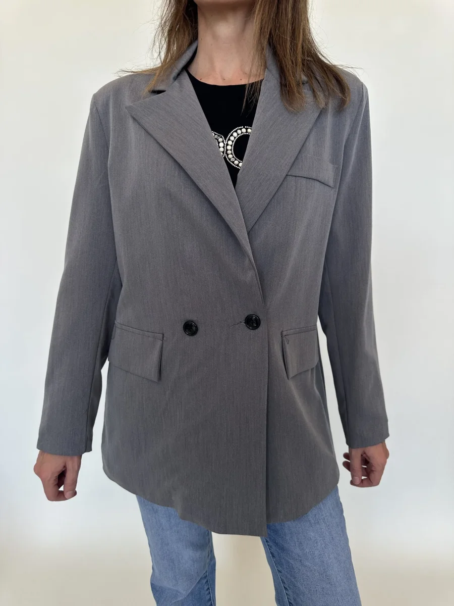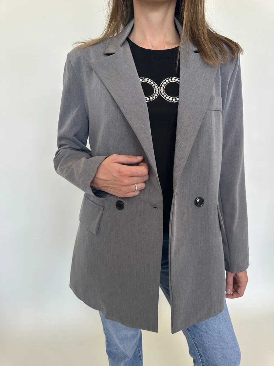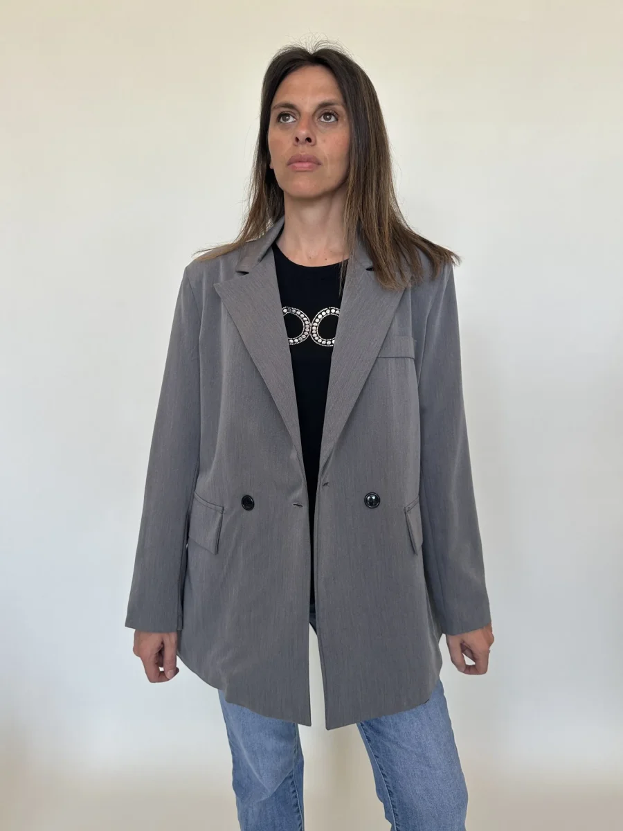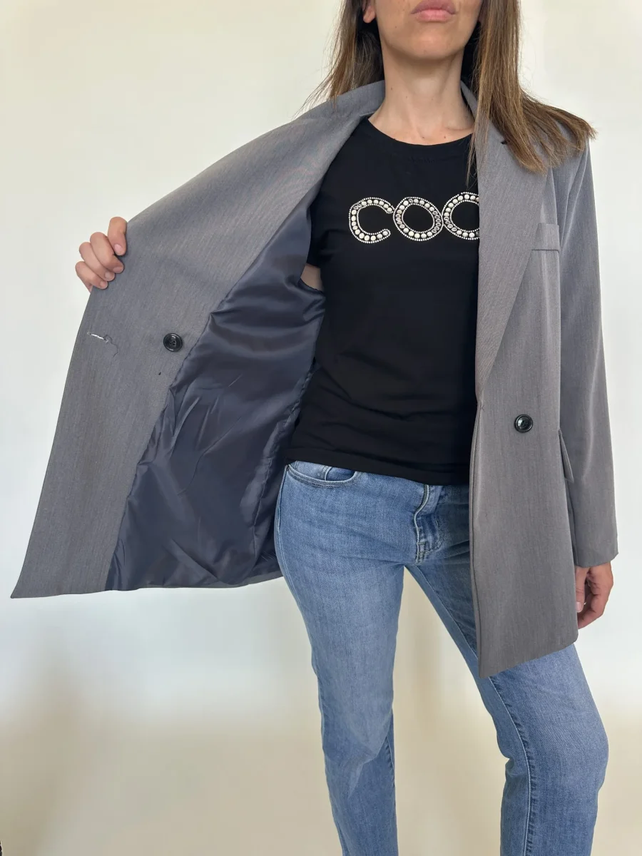 Blazer doppiopetto con bottone gioiello, con spallina imbottita Taglia unica, veste fino ad una 44 90% poliestere 10% elastan Fodera 100% poliestere