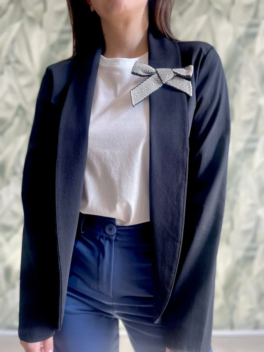 Blazer punto milano ROSE, con spilla a fiocco rimovibile Vestibilità slim Taglie dalla S alla L