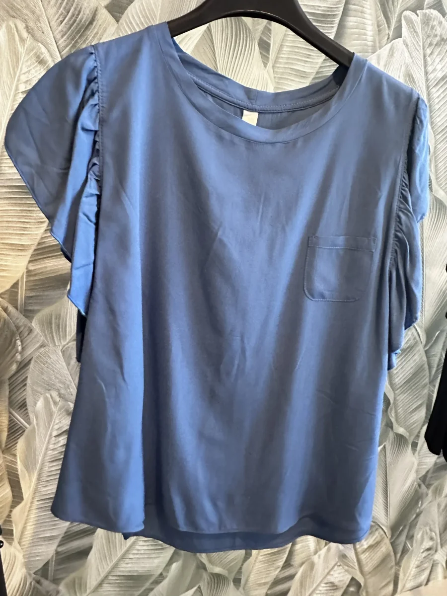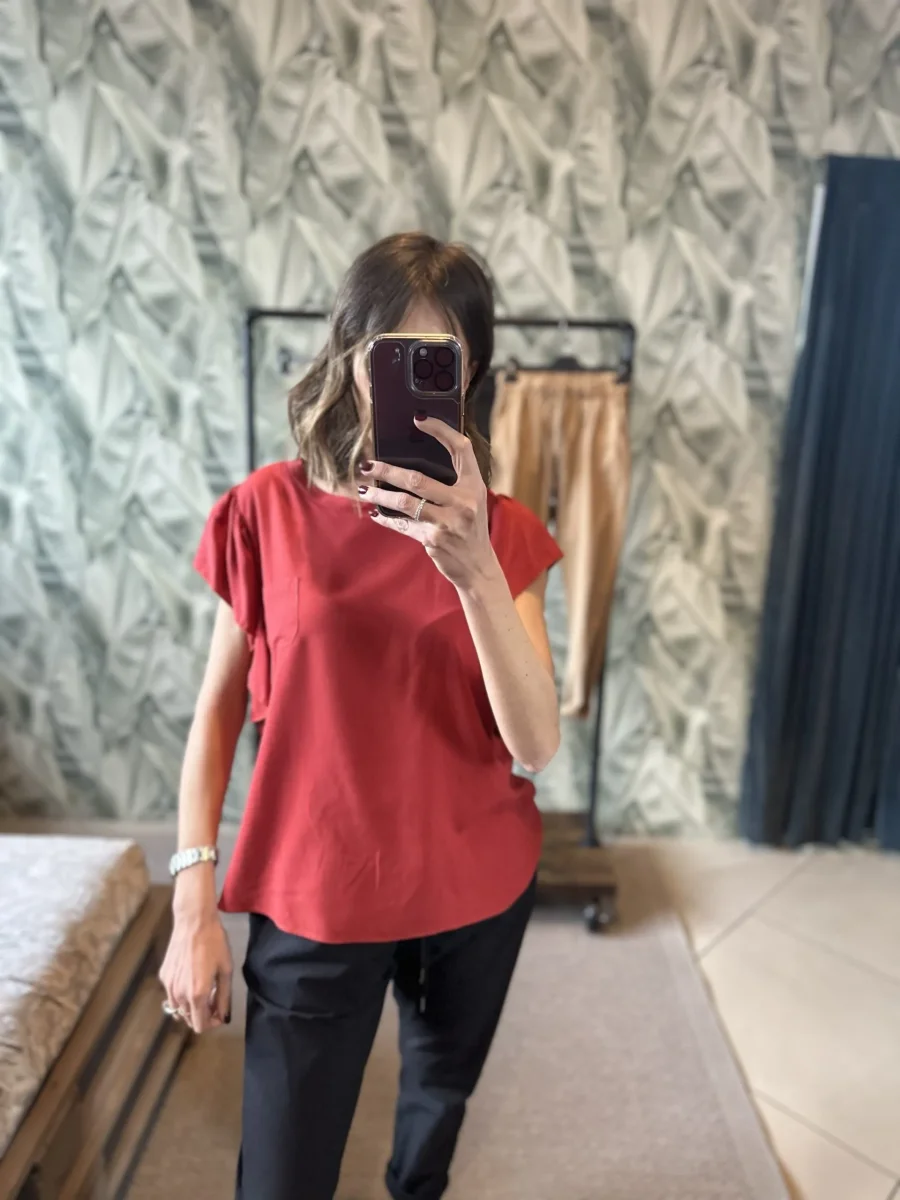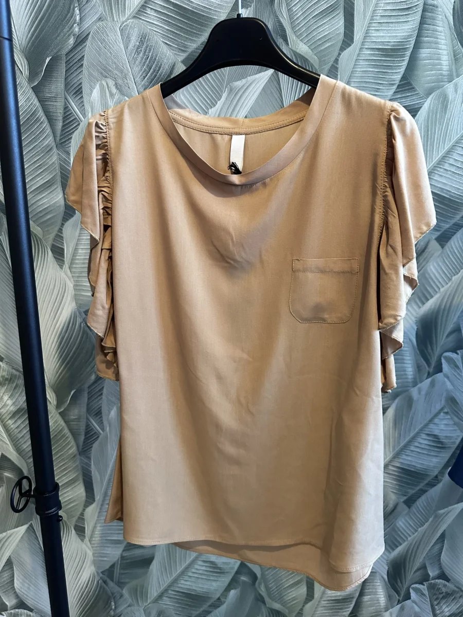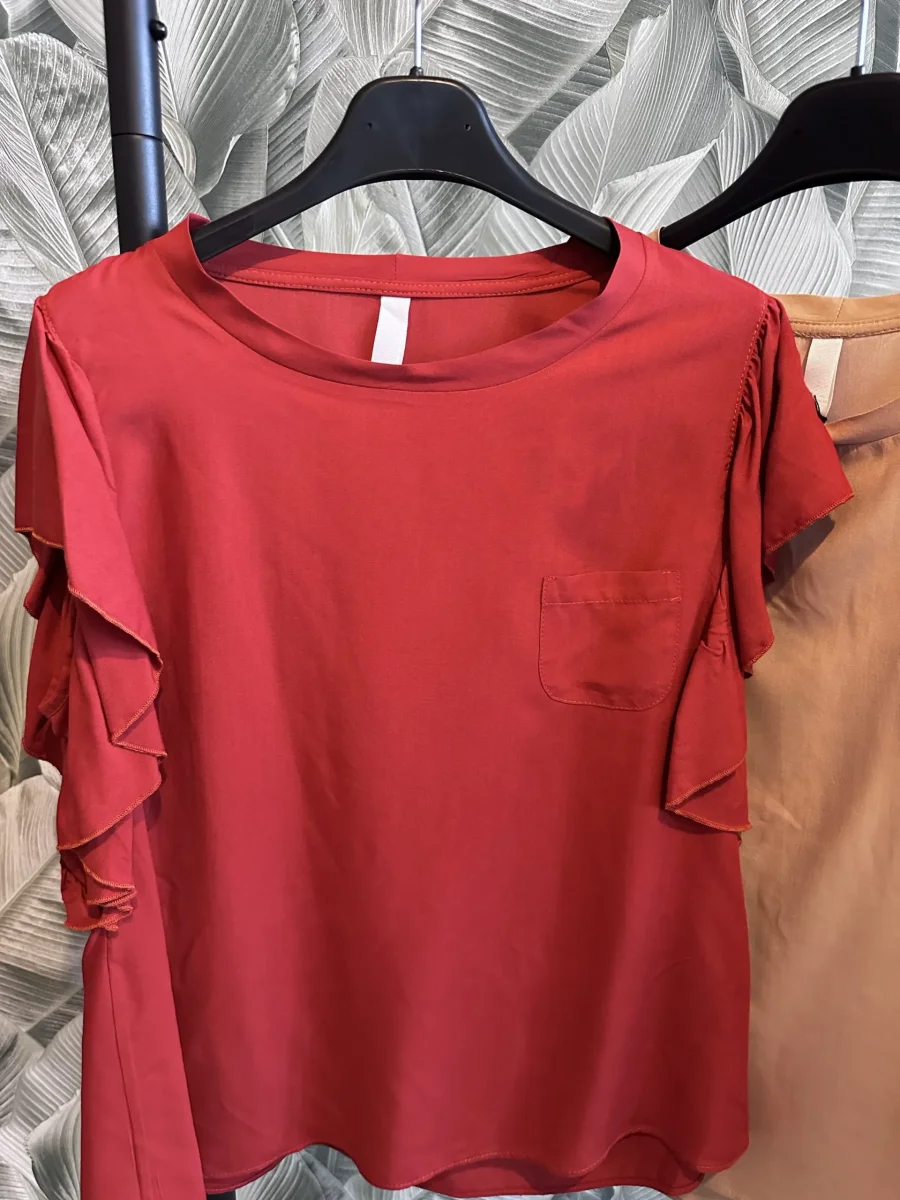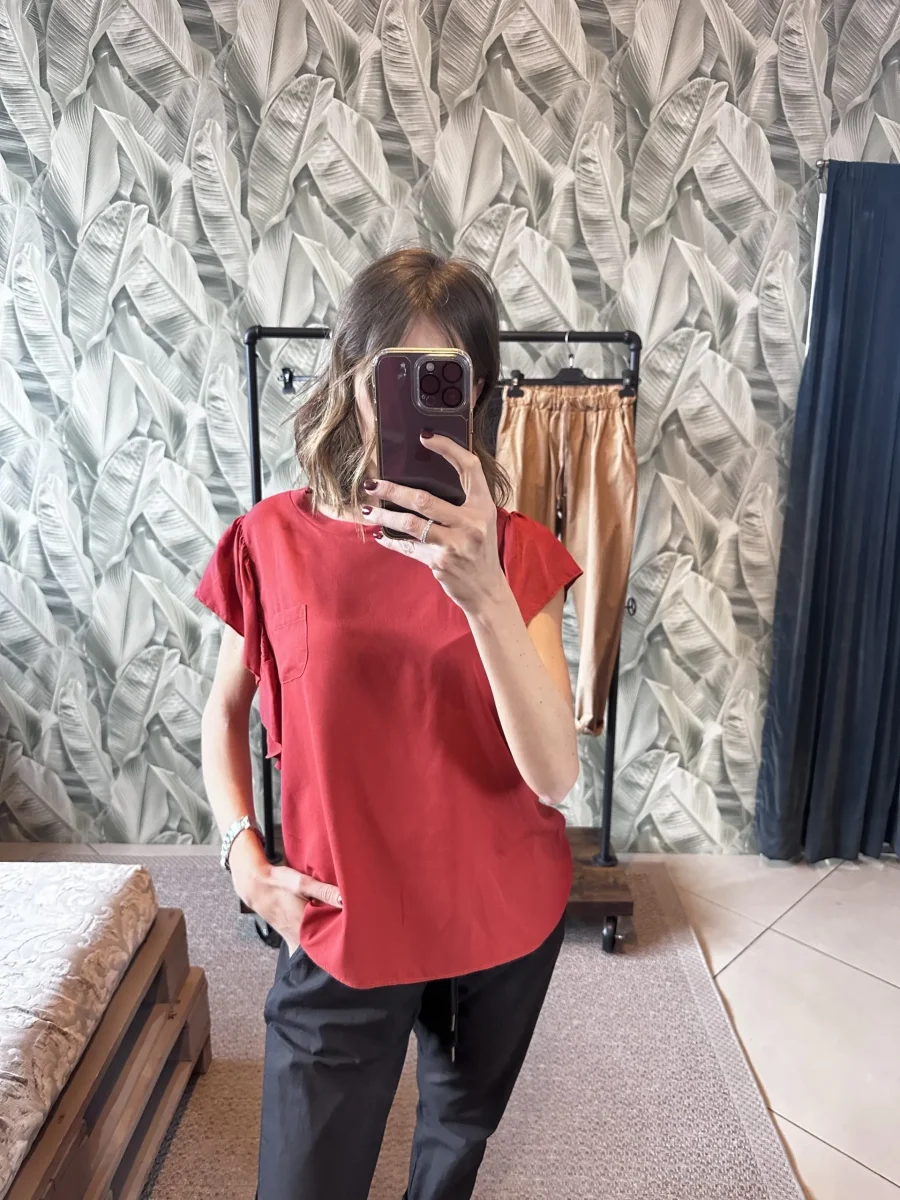 Blusa in pura viscosa JOY. Manica con gala, piccolo taschino Vestibilità regolare Composizione: 100% viscosa Made in Italy