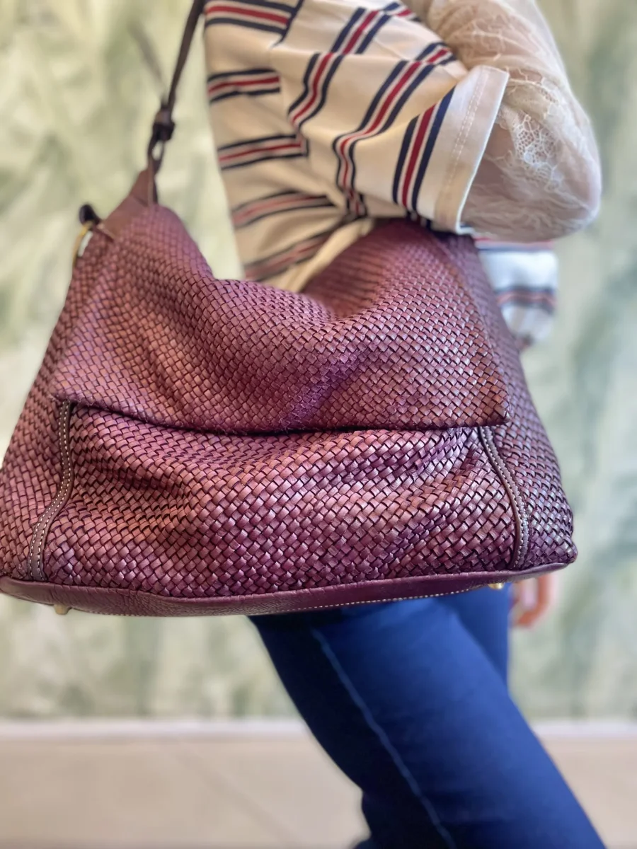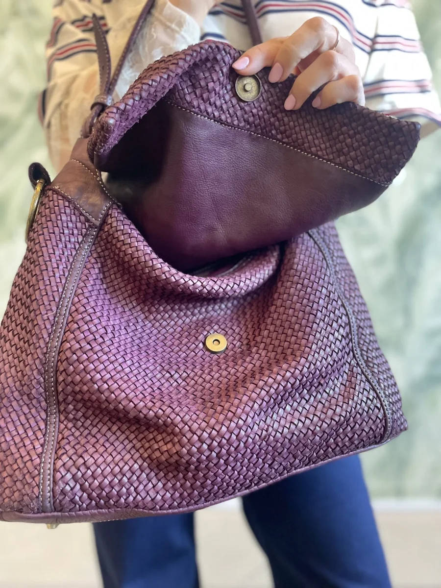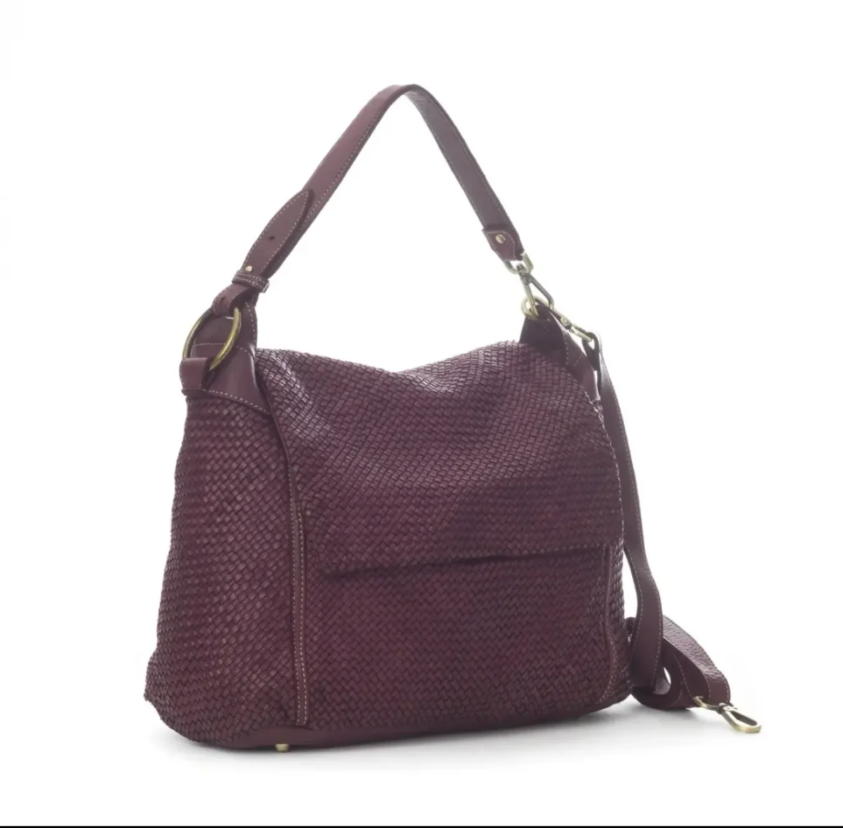 Borsa, modello cartella, finemente intrecciata ILARY Lavorazione artigianale, modello in vera pelle Dimensioni: 40 x 32 cm Dotata di tracolla regolabile, chiusura con zip centrale e tre tasche interne. Made in Italy