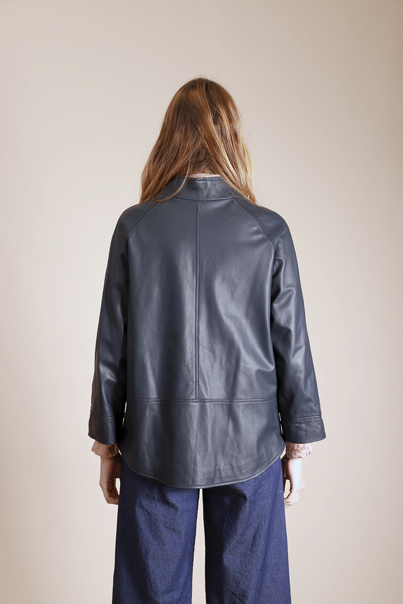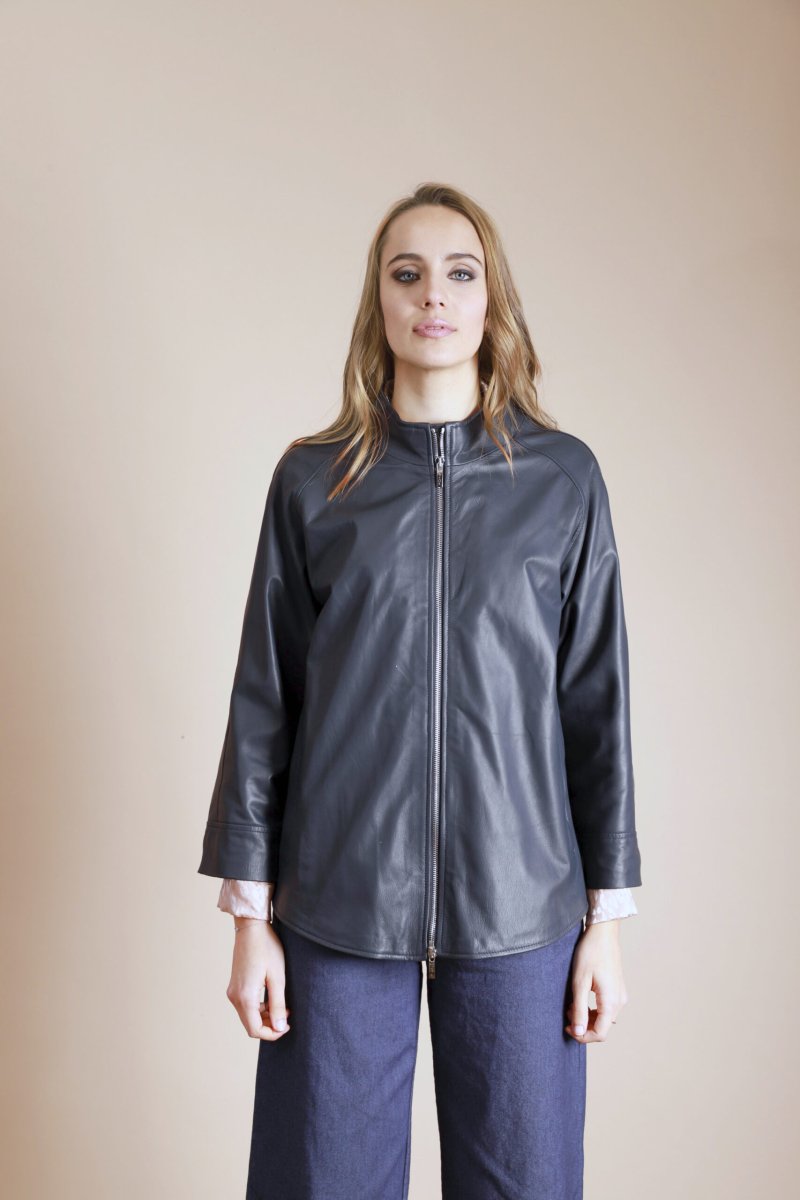 La linea è diritta, la vestibilità comoda e la lunghezza sotto i fianchi. Ha maniche ampie e dritte di lunghezza sopra il polso ma non 3/4 con il girospalla a sella e tasche aperte con un filetto.