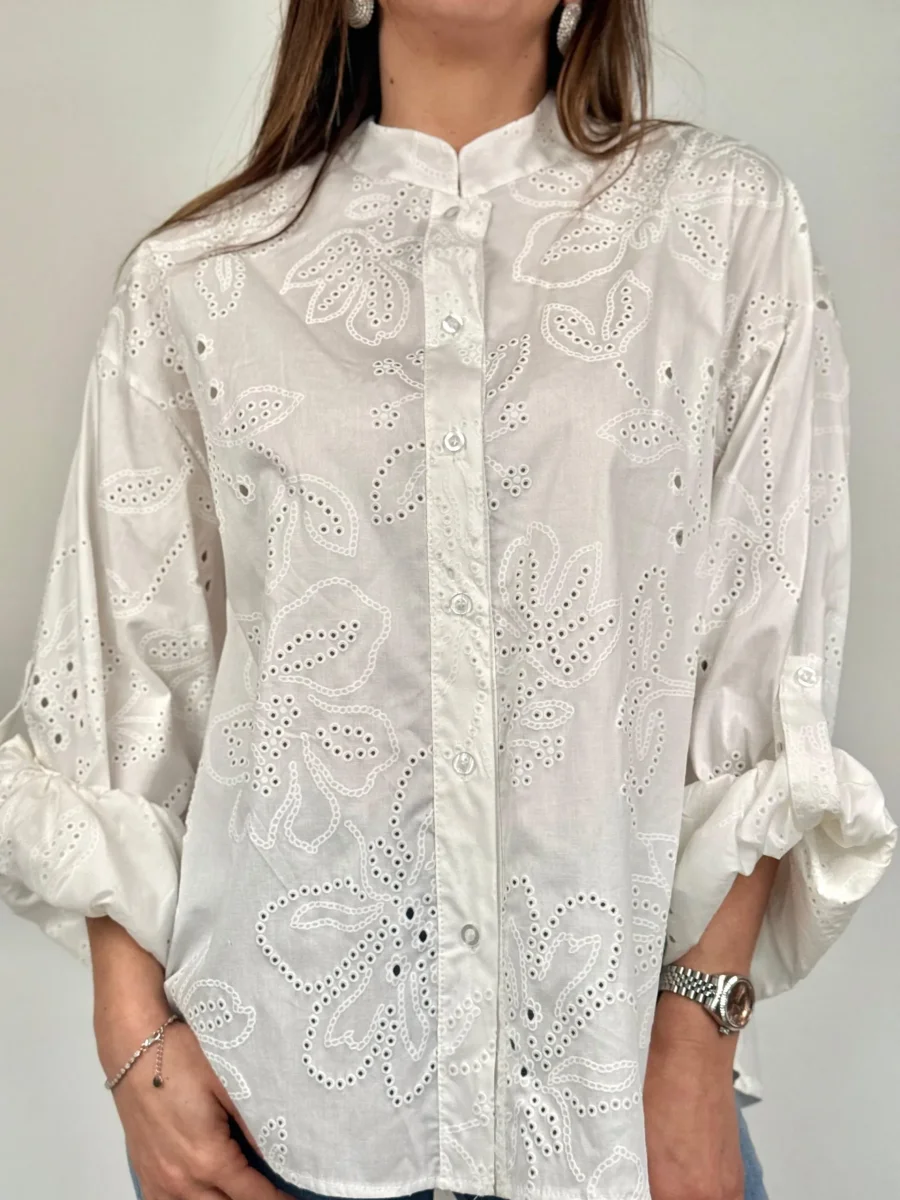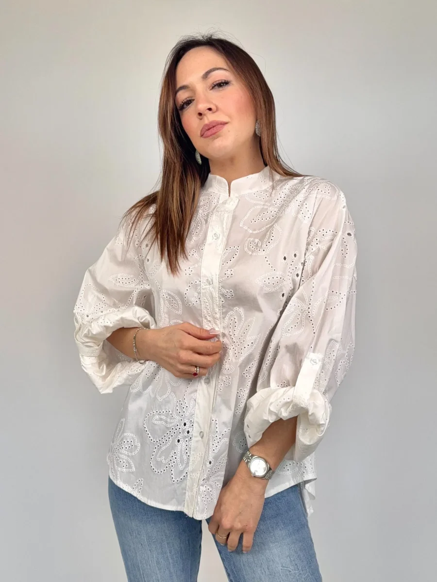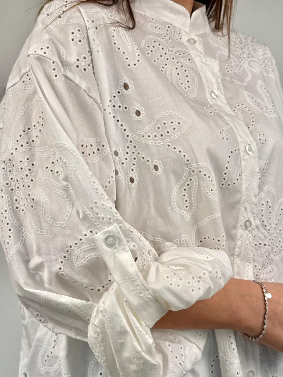 Camicia Alla Coreana In Sangallo