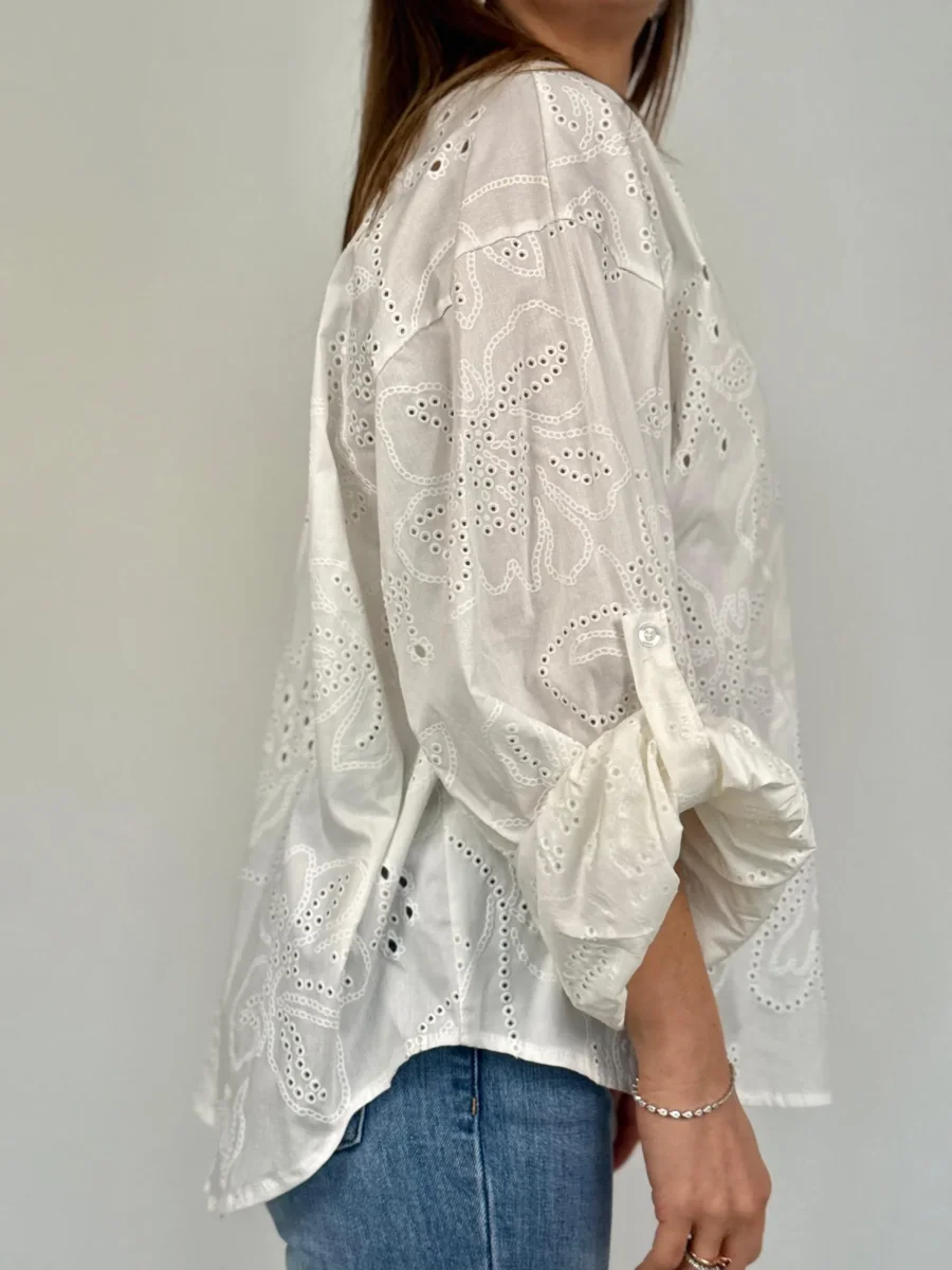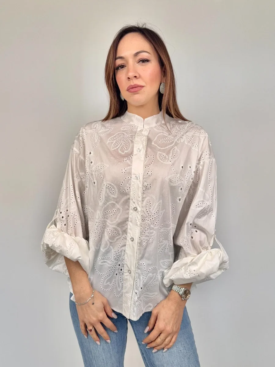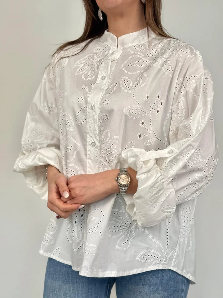 Camicia Alla Coreana In Sangallo