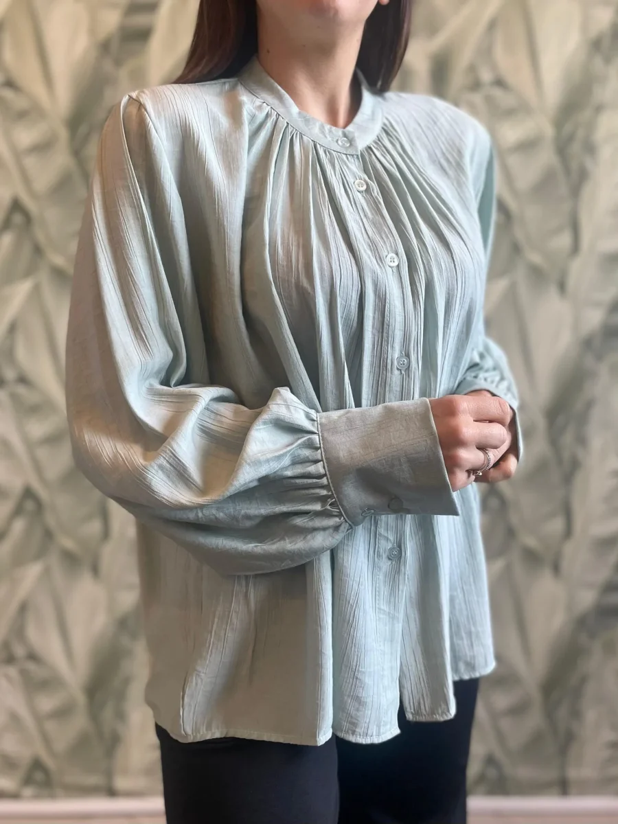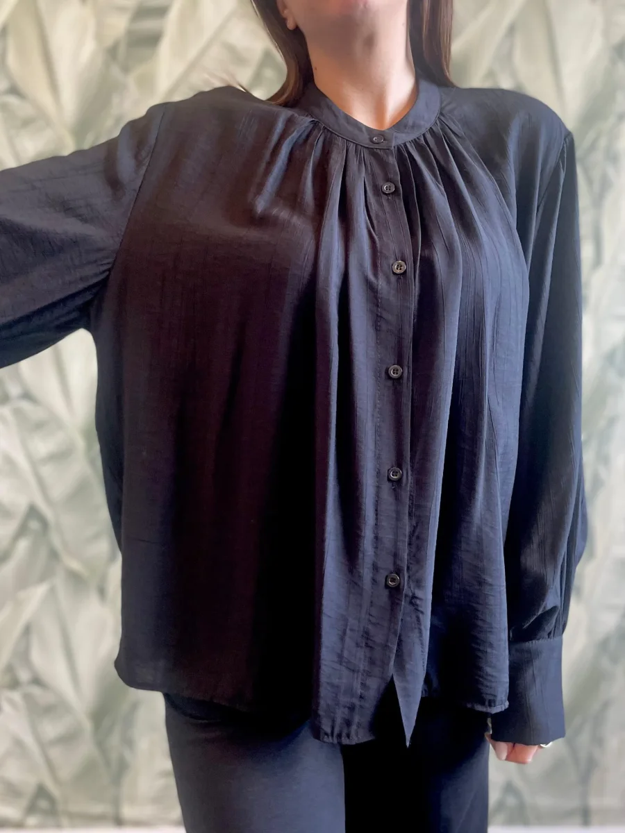 Camicia coreana in mistoviscosa modello ELLY Taglia unica, giroseno 110 cm Composizione: 87% viscosa 13% poliammide Made in Italy