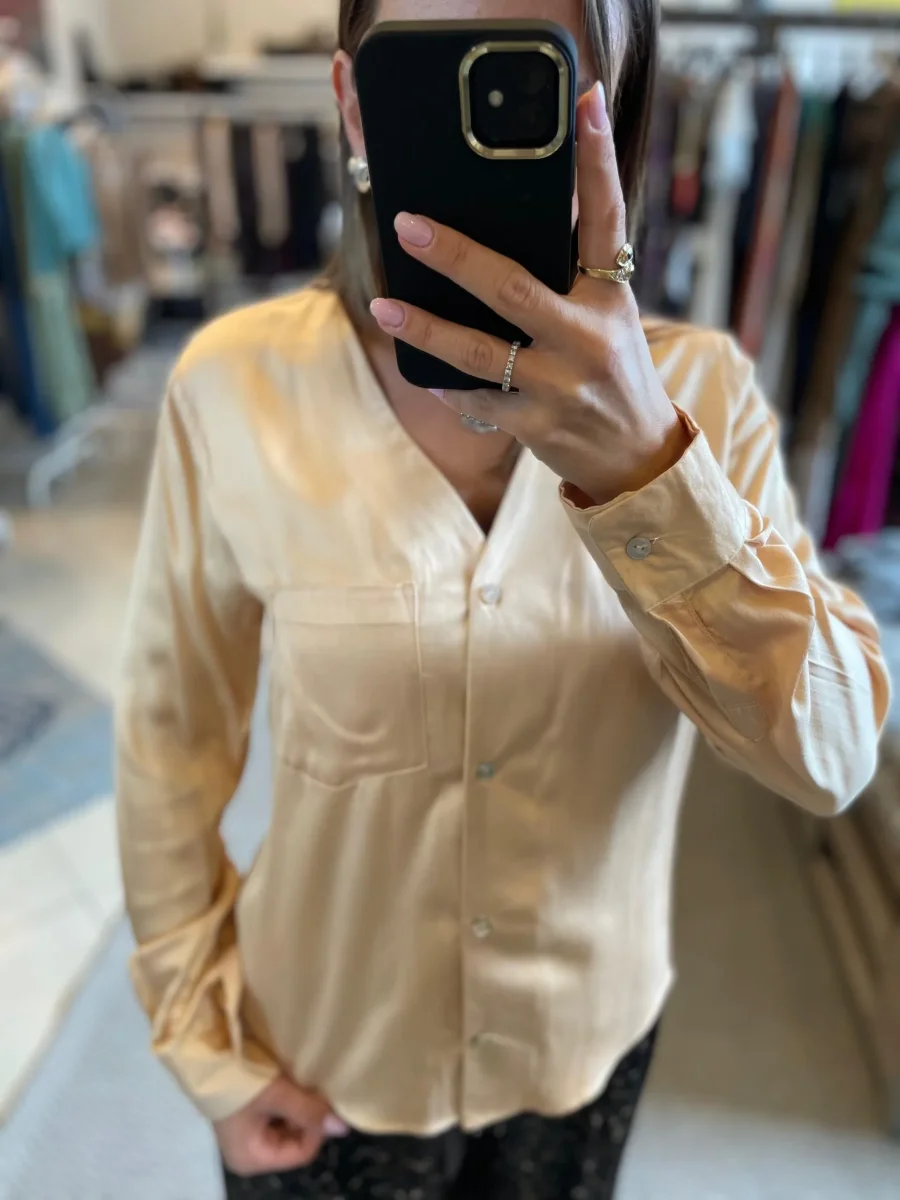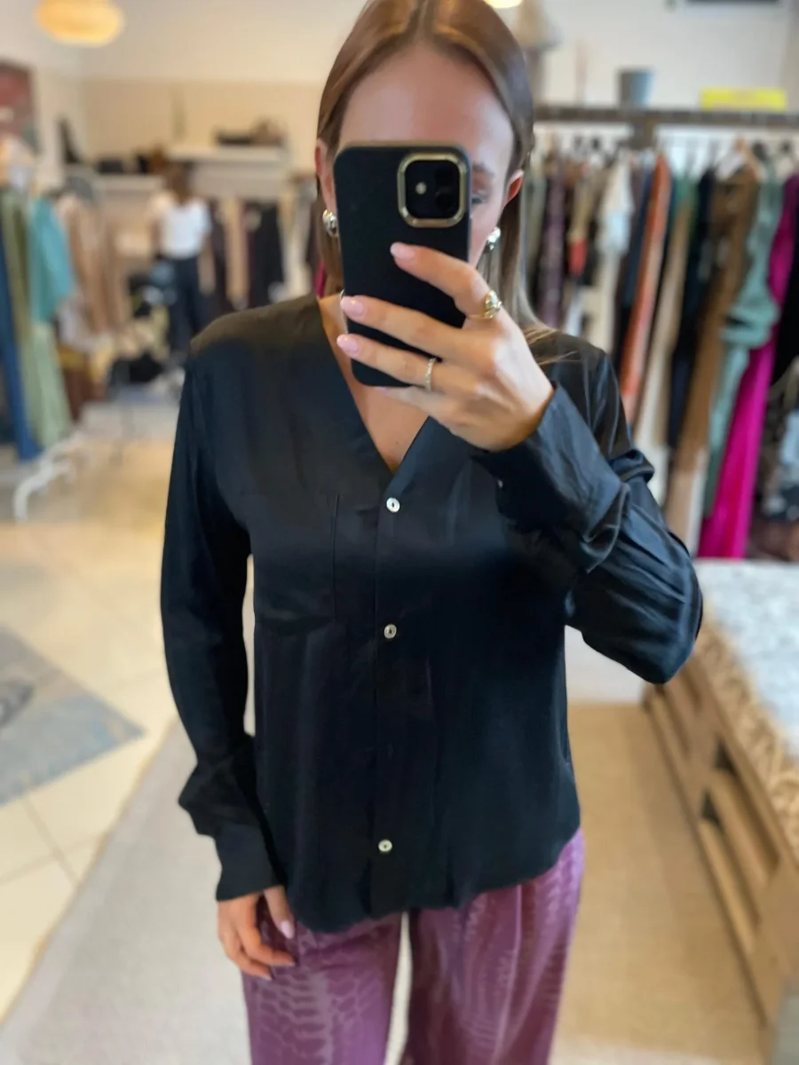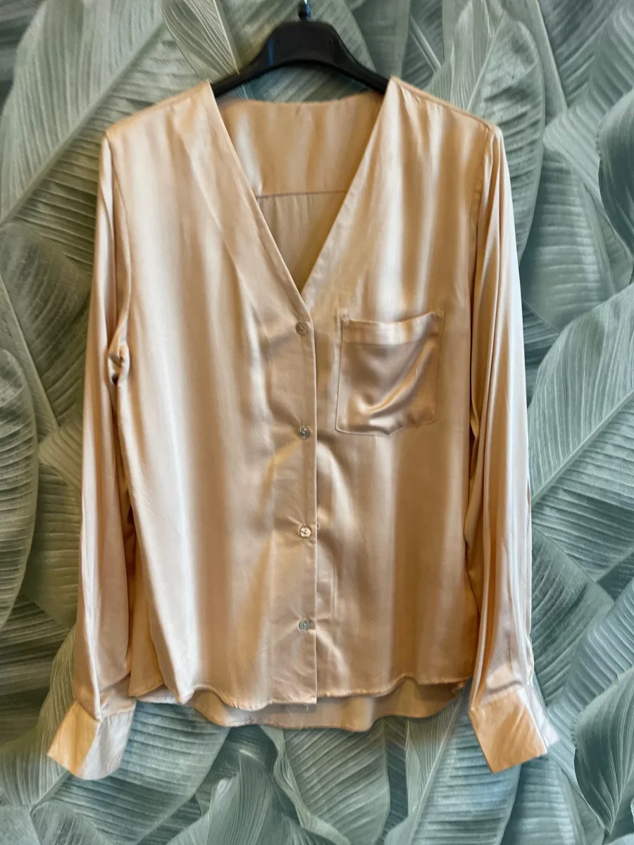 Camicia in raso con taschino Composizione: 100% raso di rayon scollo a V, vestibilità morbida