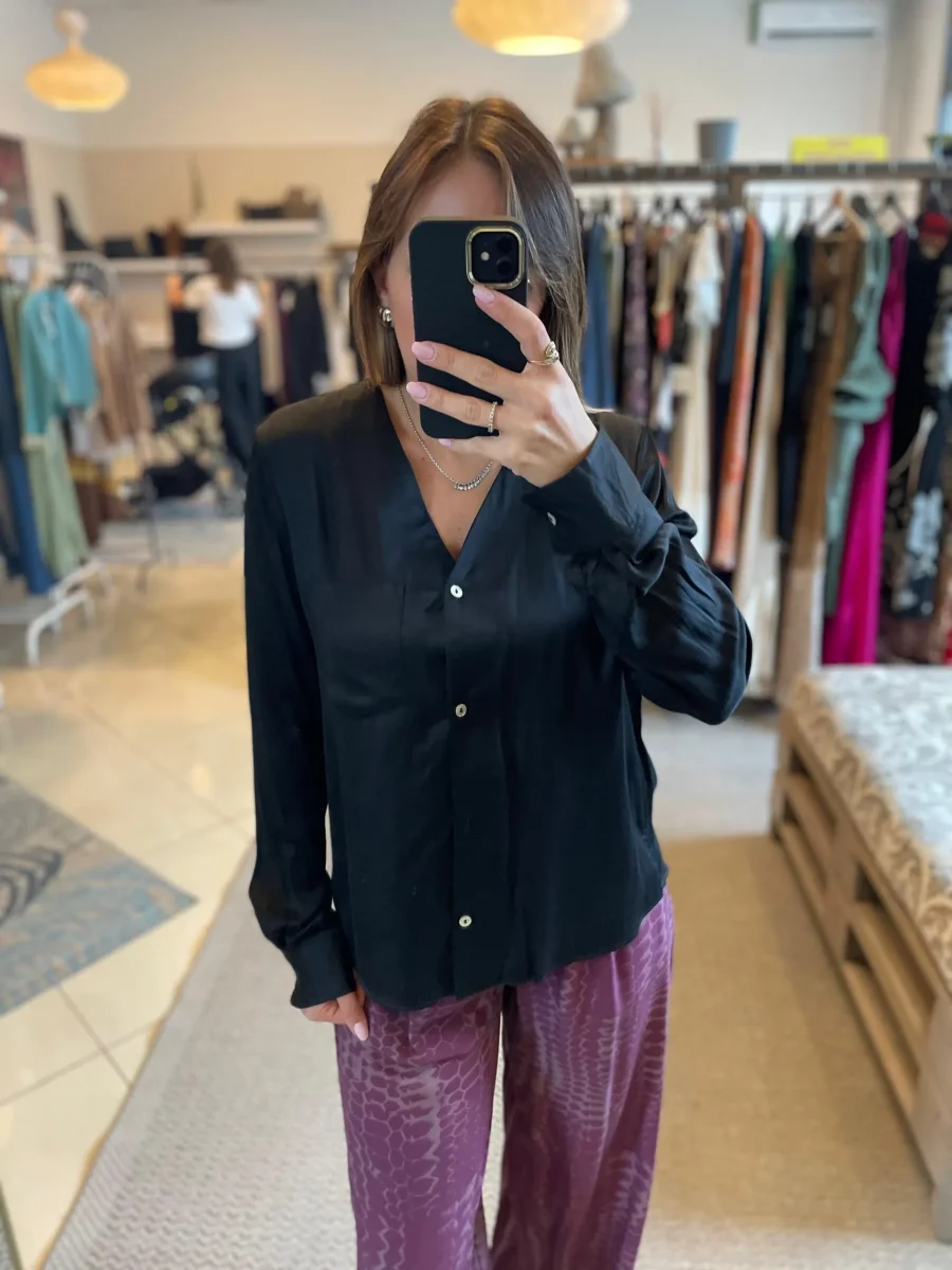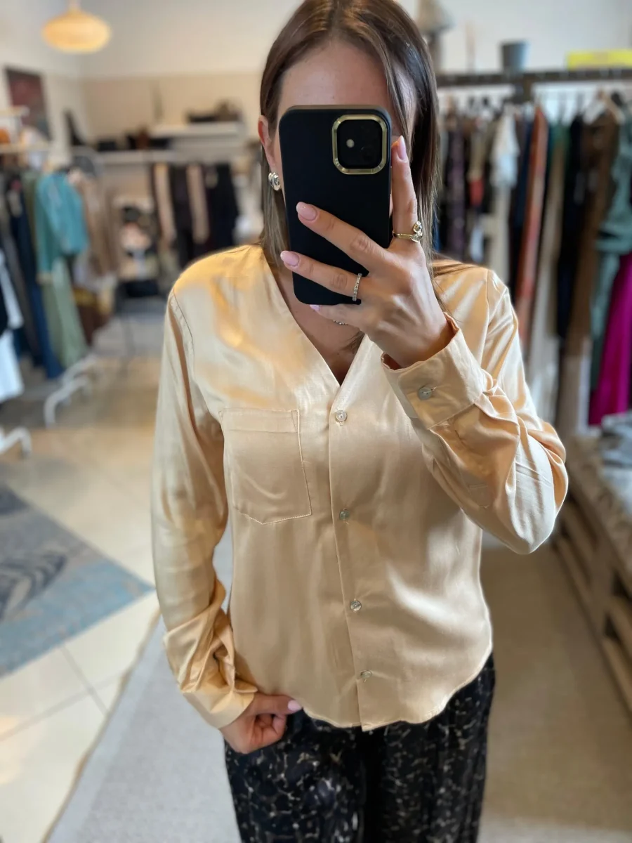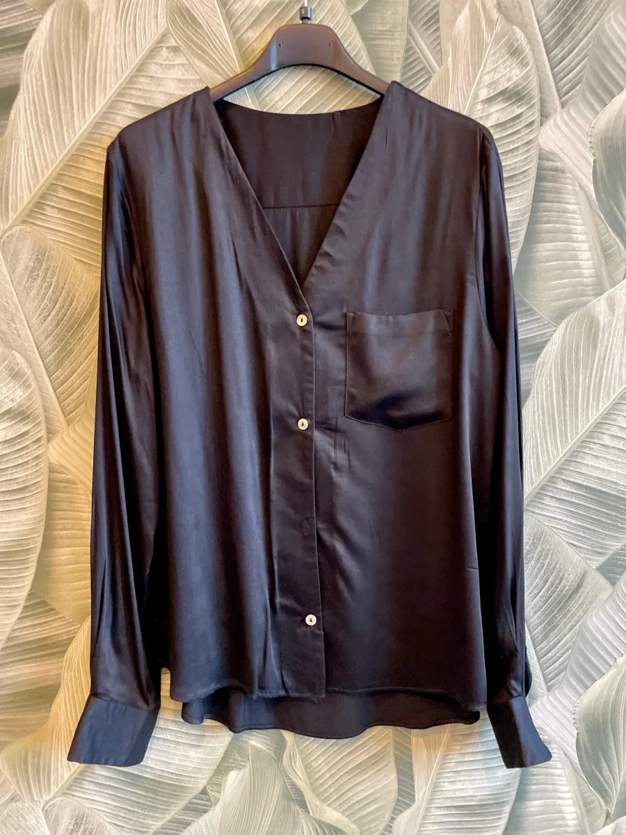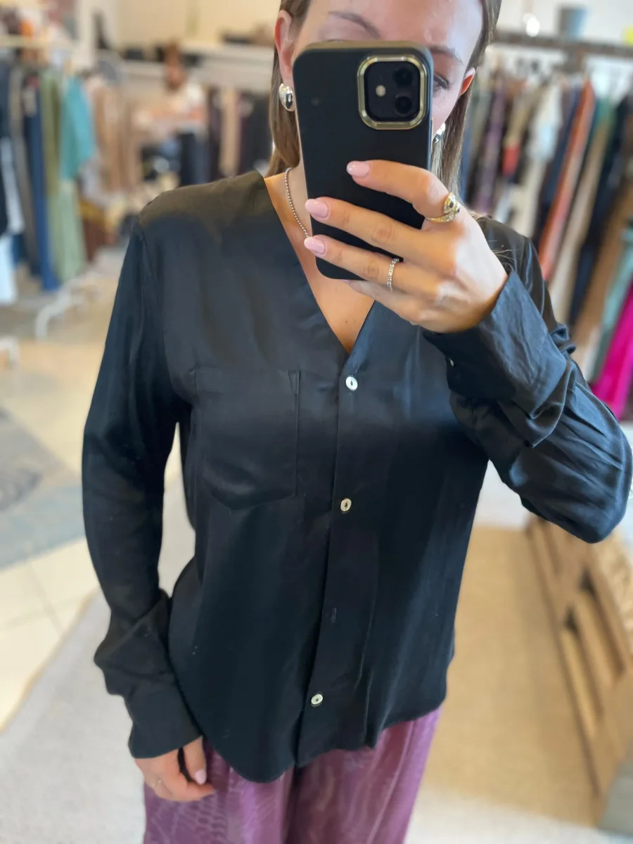 Camicia in raso con taschino Composizione: 100% raso di rayon scollo a V, vestibilità morbida