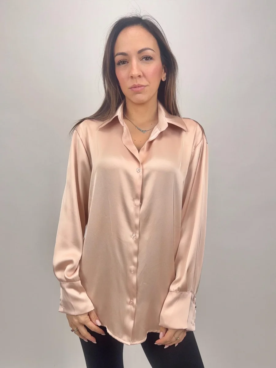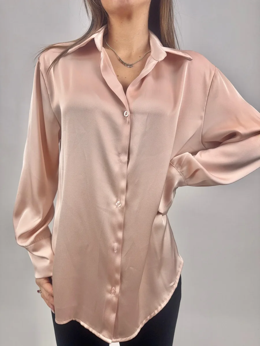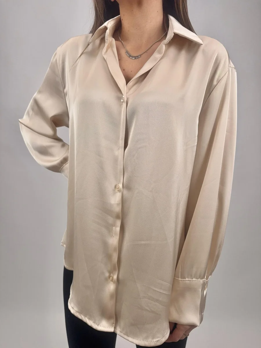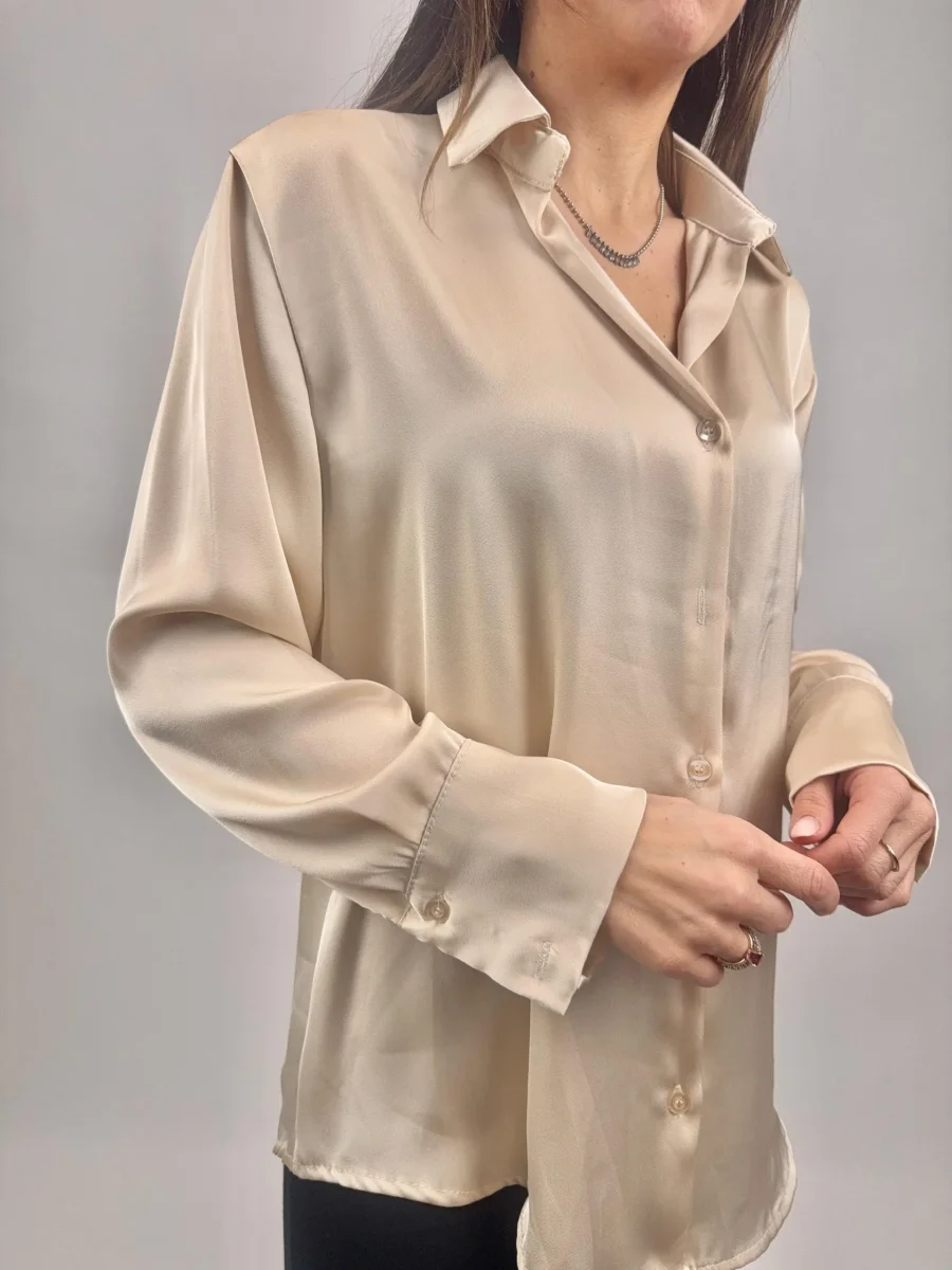 Camicia in satin. Taglia unica, ottima vestibilità fino a una 48. 100% poliestere, Made in Italy