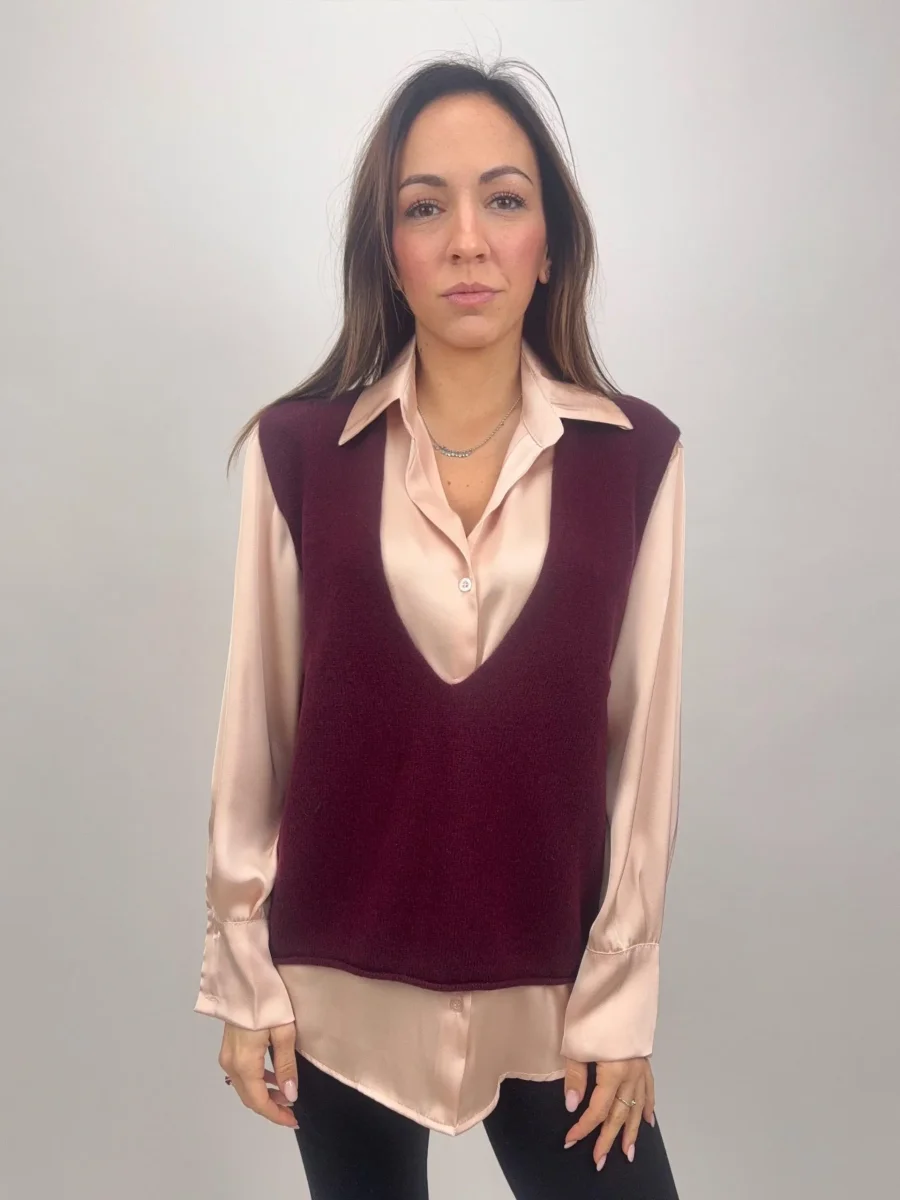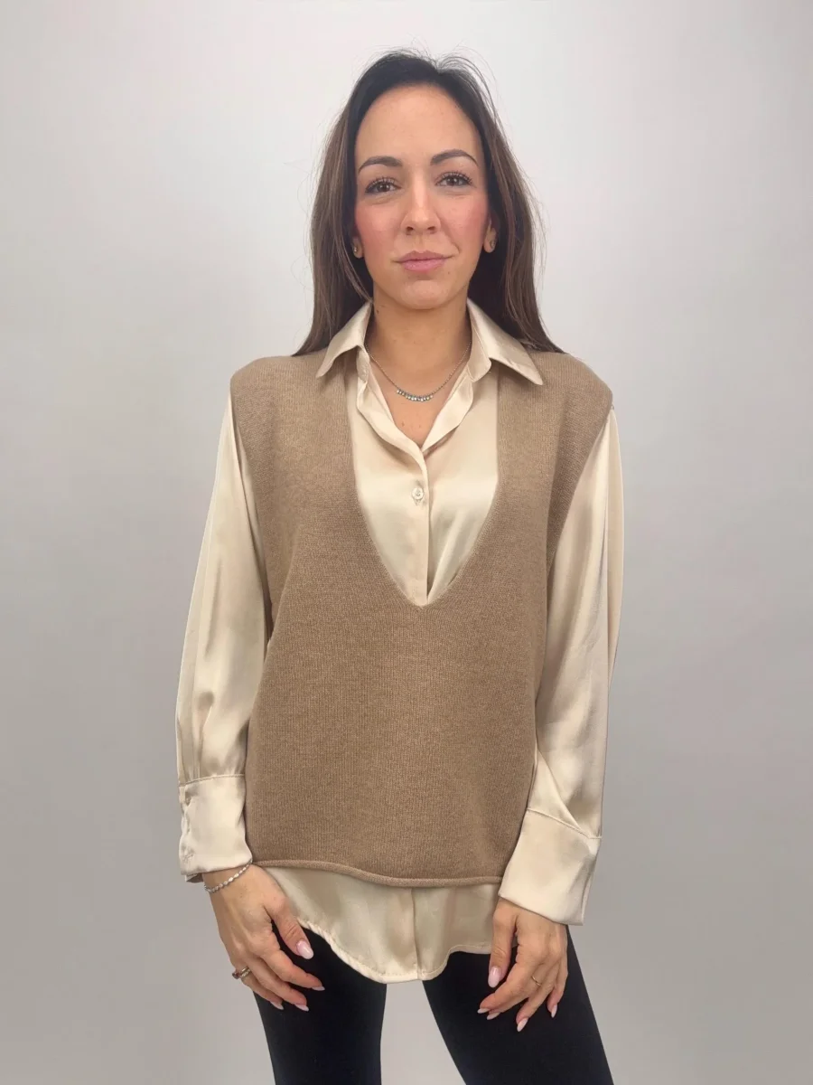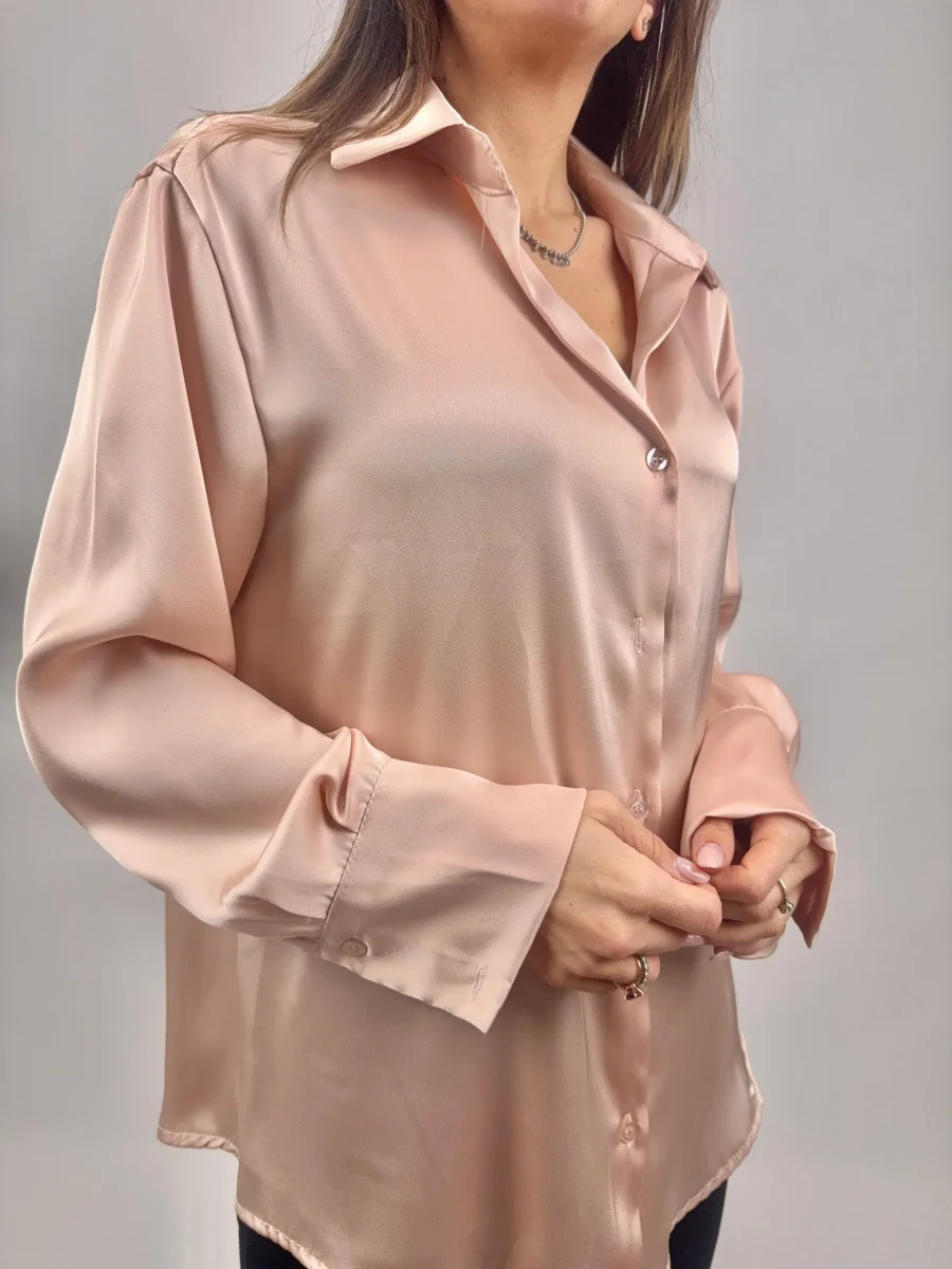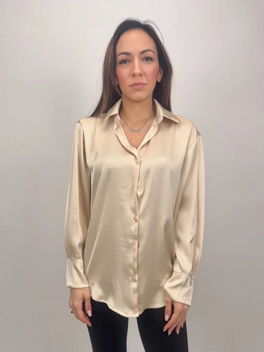 Camicia in satin. Taglia unica, ottima vestibilità fino a una 48. 100% poliestere, Made in Italy