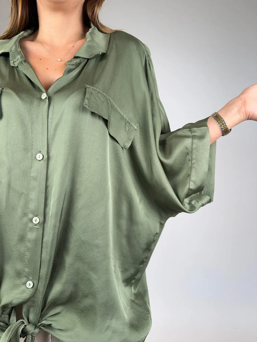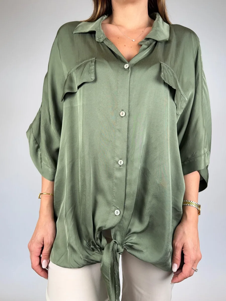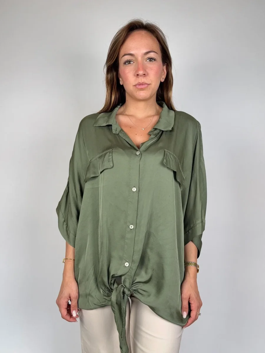 Camicia over con nodo Taglia unica, veste fino ad una 50 97% viscosa 3% elastan Made In Italy