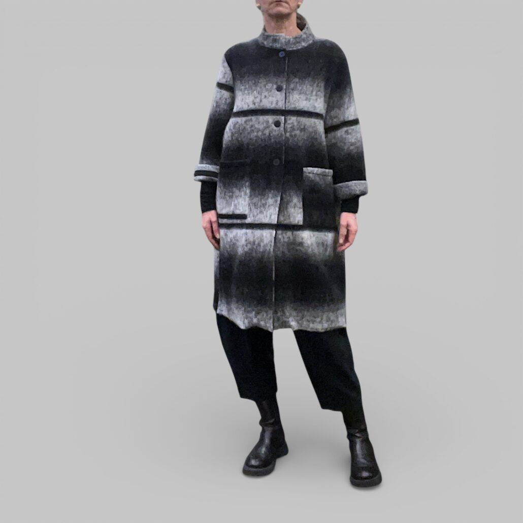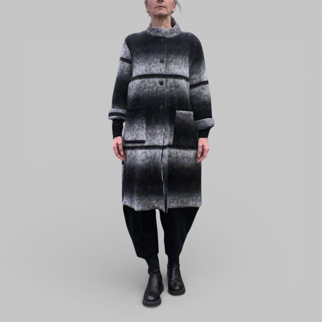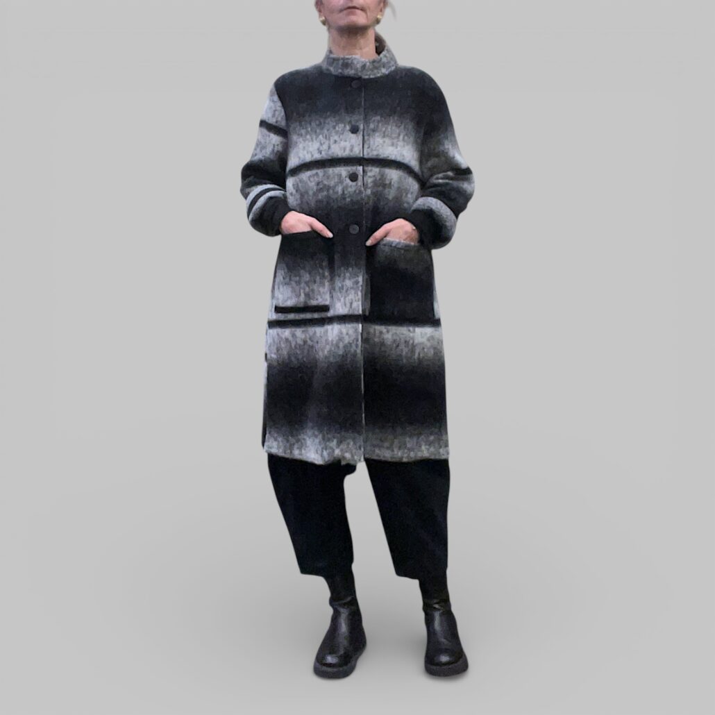 Cappotto donna lana cotta a righe bianco nero