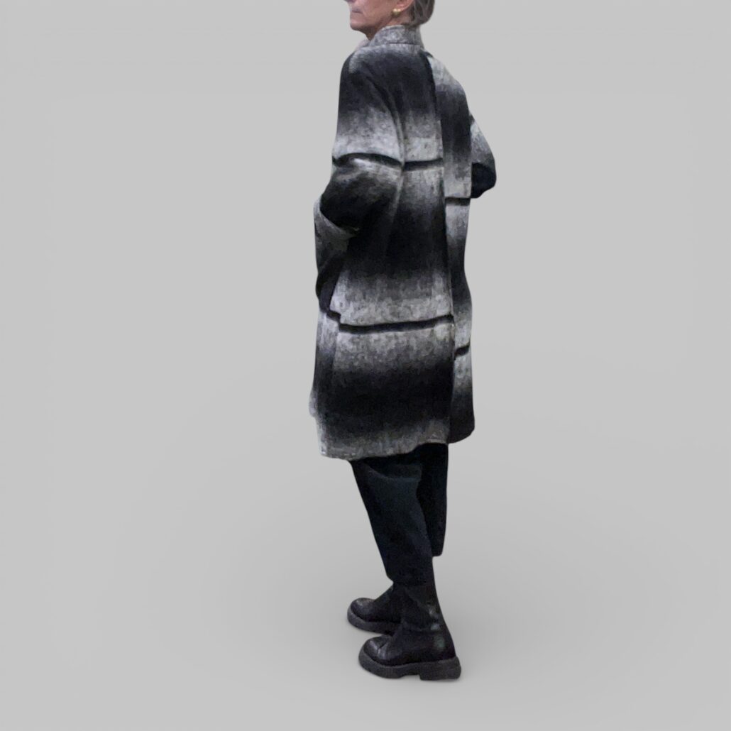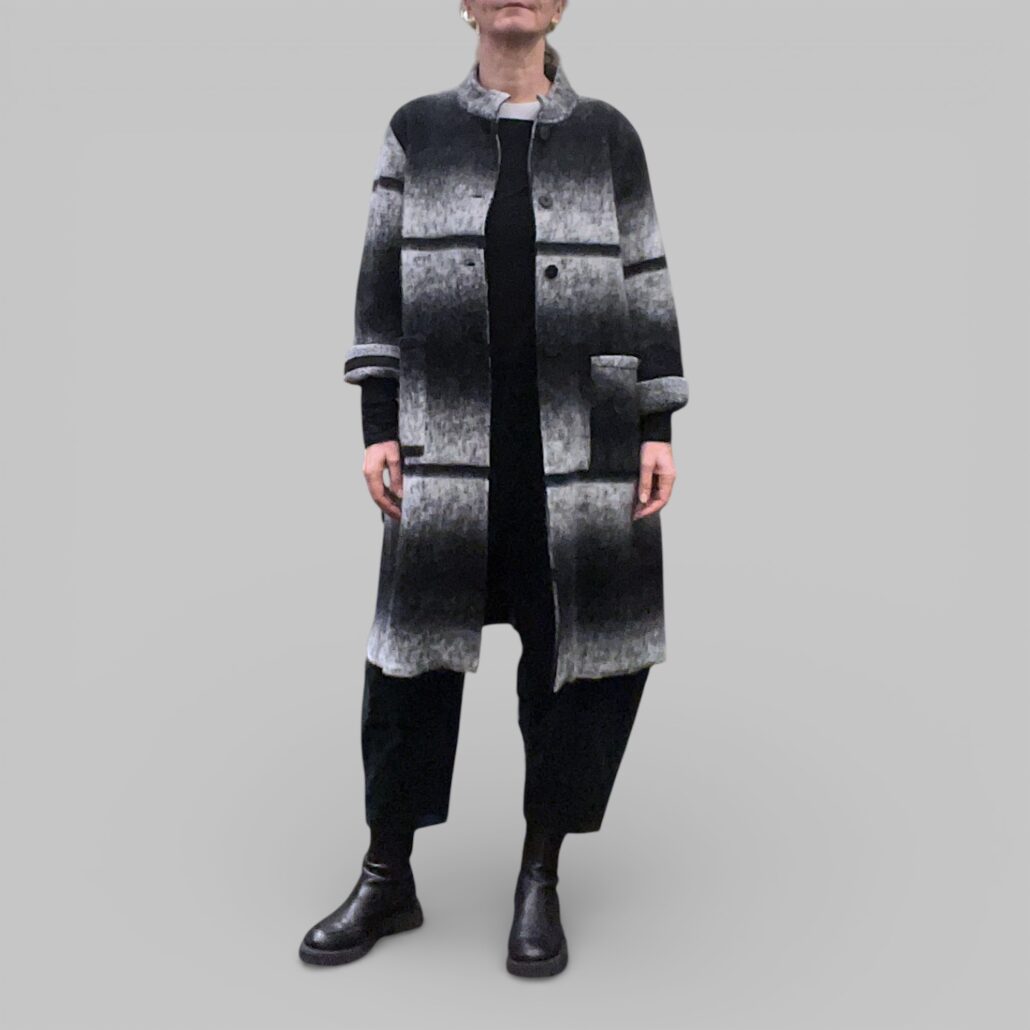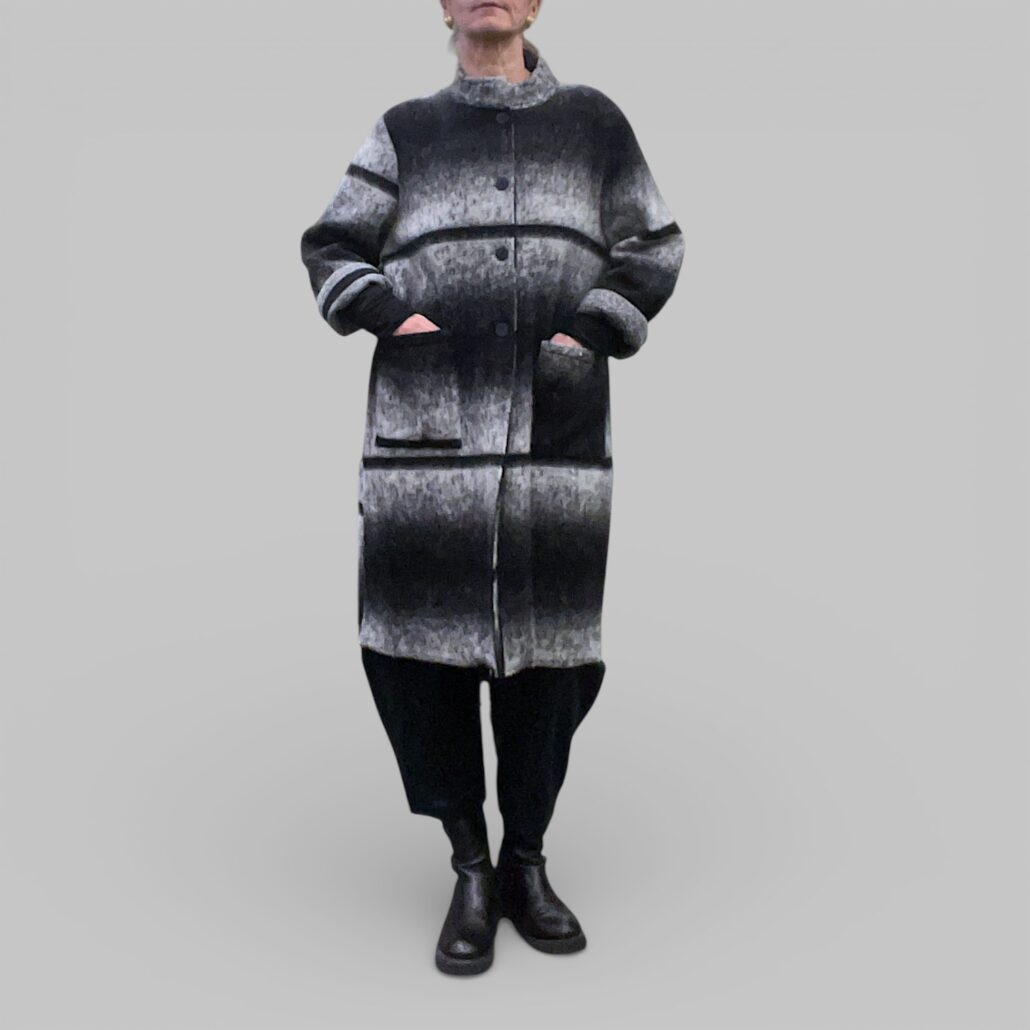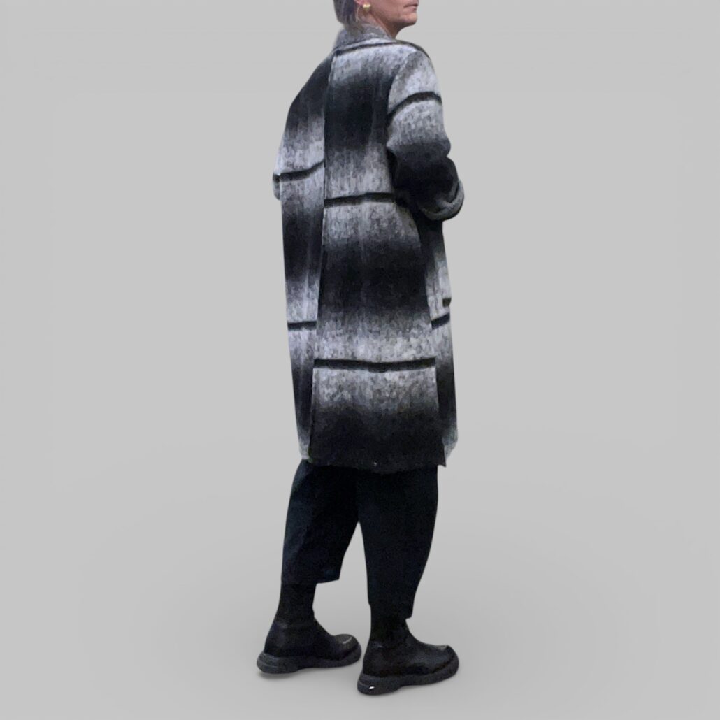 Cappotto donna lana cotta a righe bianco nero