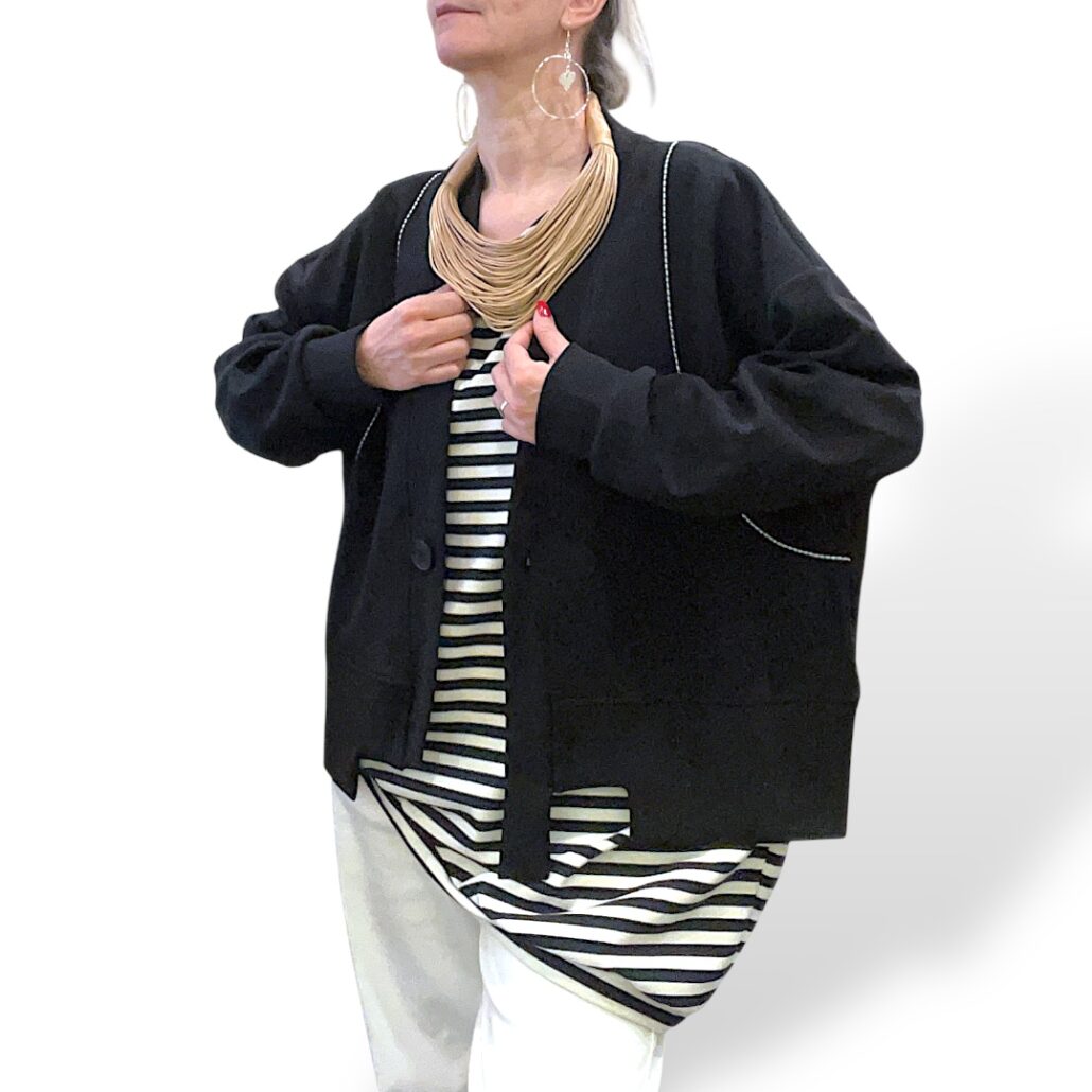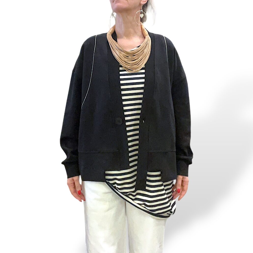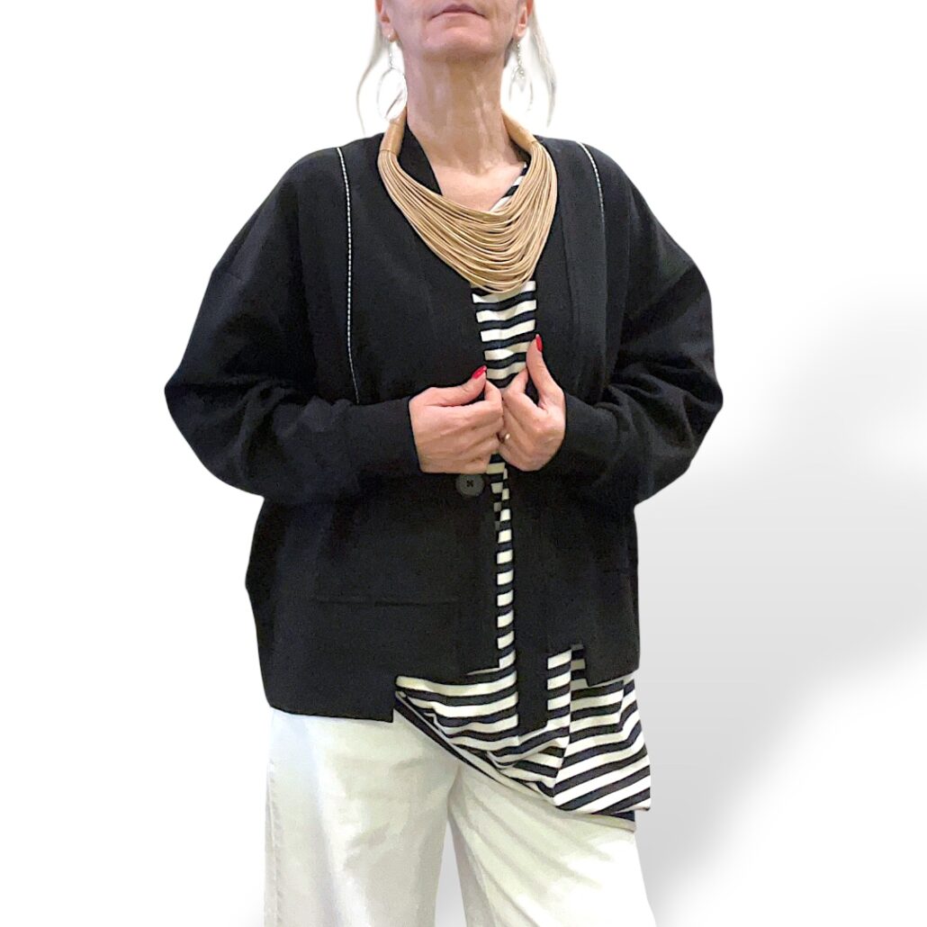 Recensisci per primo “Cardigan a felpa donna nero con cuciture a contrasto”
