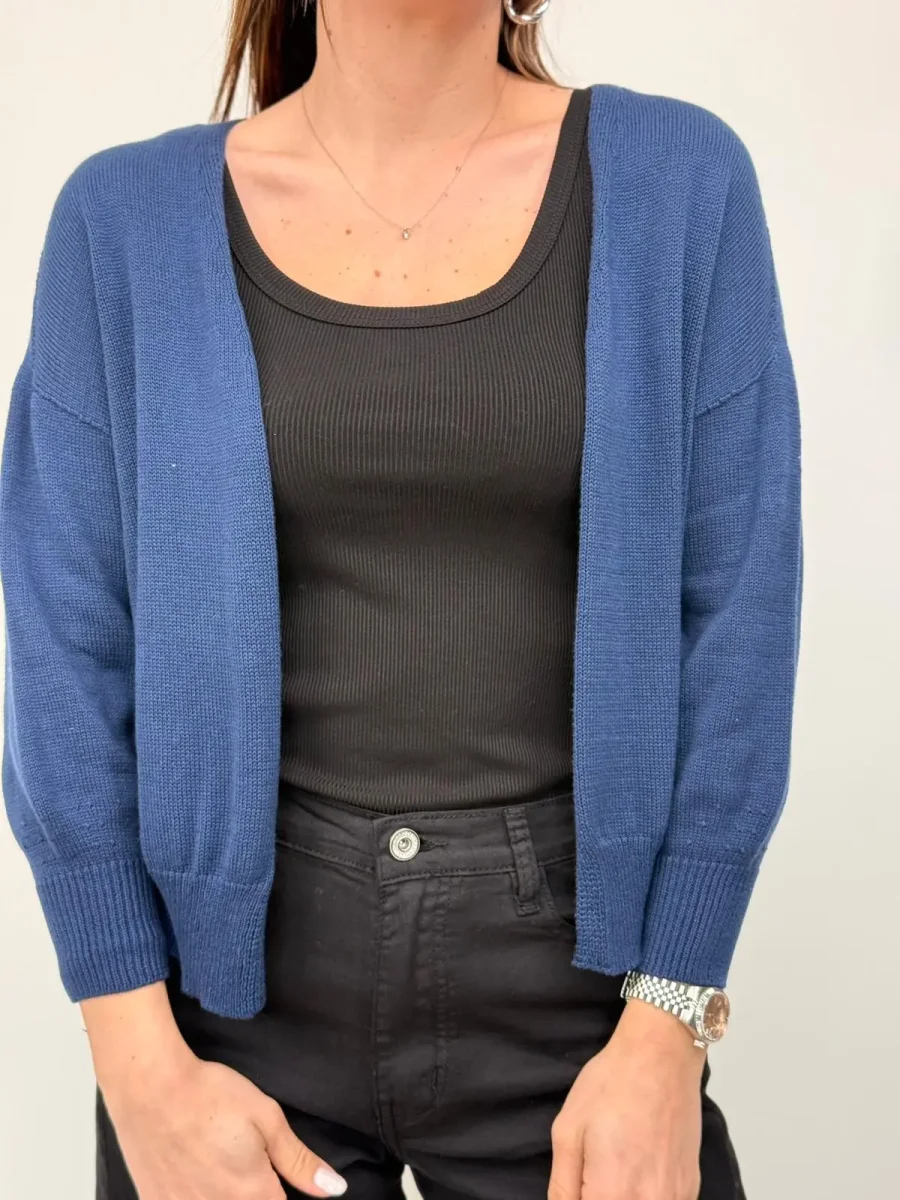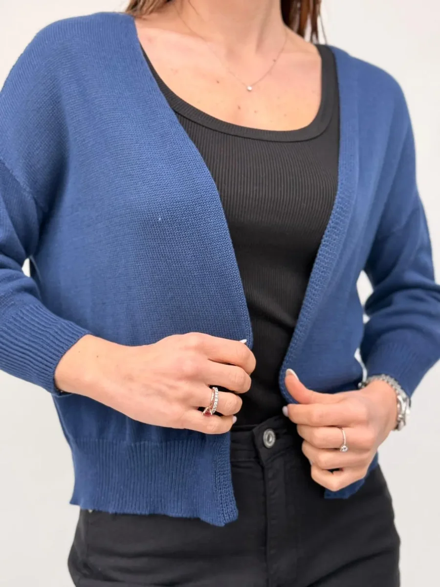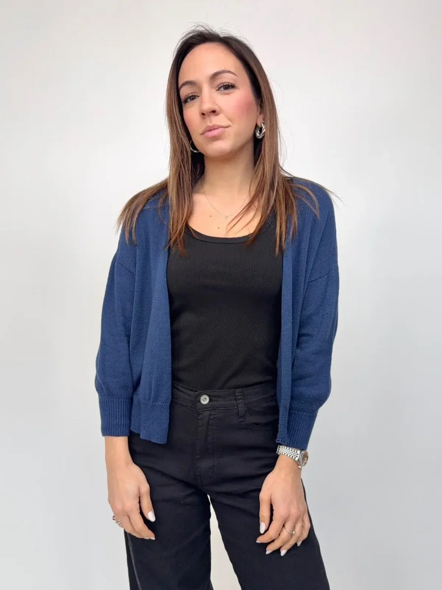 Cardigan Aperto In 100% Cotone, dal design semplice, elegante e leggero. Modello aperto, perfetto da indossare sopra top o abiti per aggiungere un tocco di stile e personalità a qualsiasi look. Taglia unica, veste fino ad una 42 Composizione: 100% Cotone Made in Italy