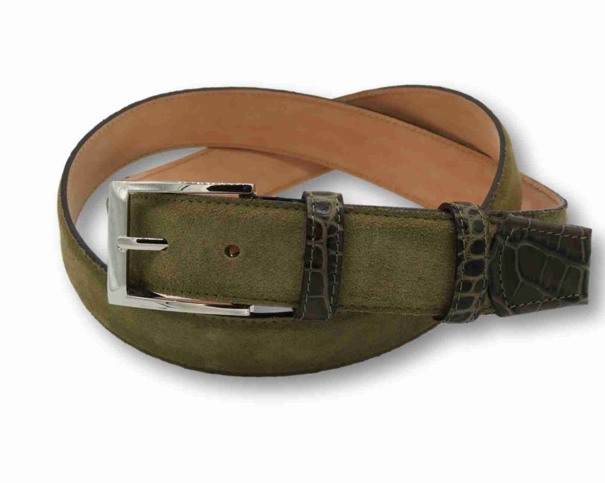 La Cintura Camoscio – Cocco (pelle di vitello scamosciata) è una cintura molto trendy e davvero morbida, realizzata in vera pelle scamosciata con rifiniture doppio passante e puntale in vitello stampato coccodrillo.