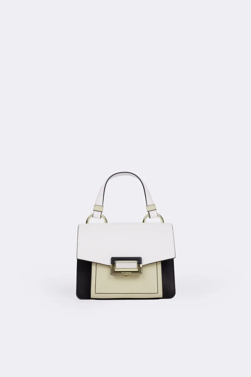 CROMIA Borsa vitello 1406264 Borsa a mano realizzata in pelle di vitello liscia, iconica combinazione di colori, chiusura metallica e resina con parte centrale smaltata. Finiture oro chiaro. Dotata di tracolla regolabile in pelle. Misure 21x16x9 Codice web 86/105 Napoli Roma Milano -ARCHIVI- 1406264-029 Composizione 100% Vitello liscio Visita la nostra pagina facebook boutique flair