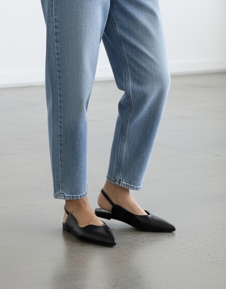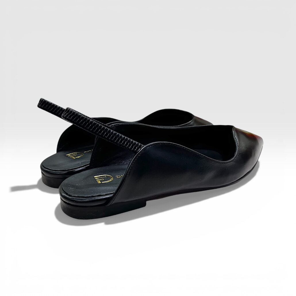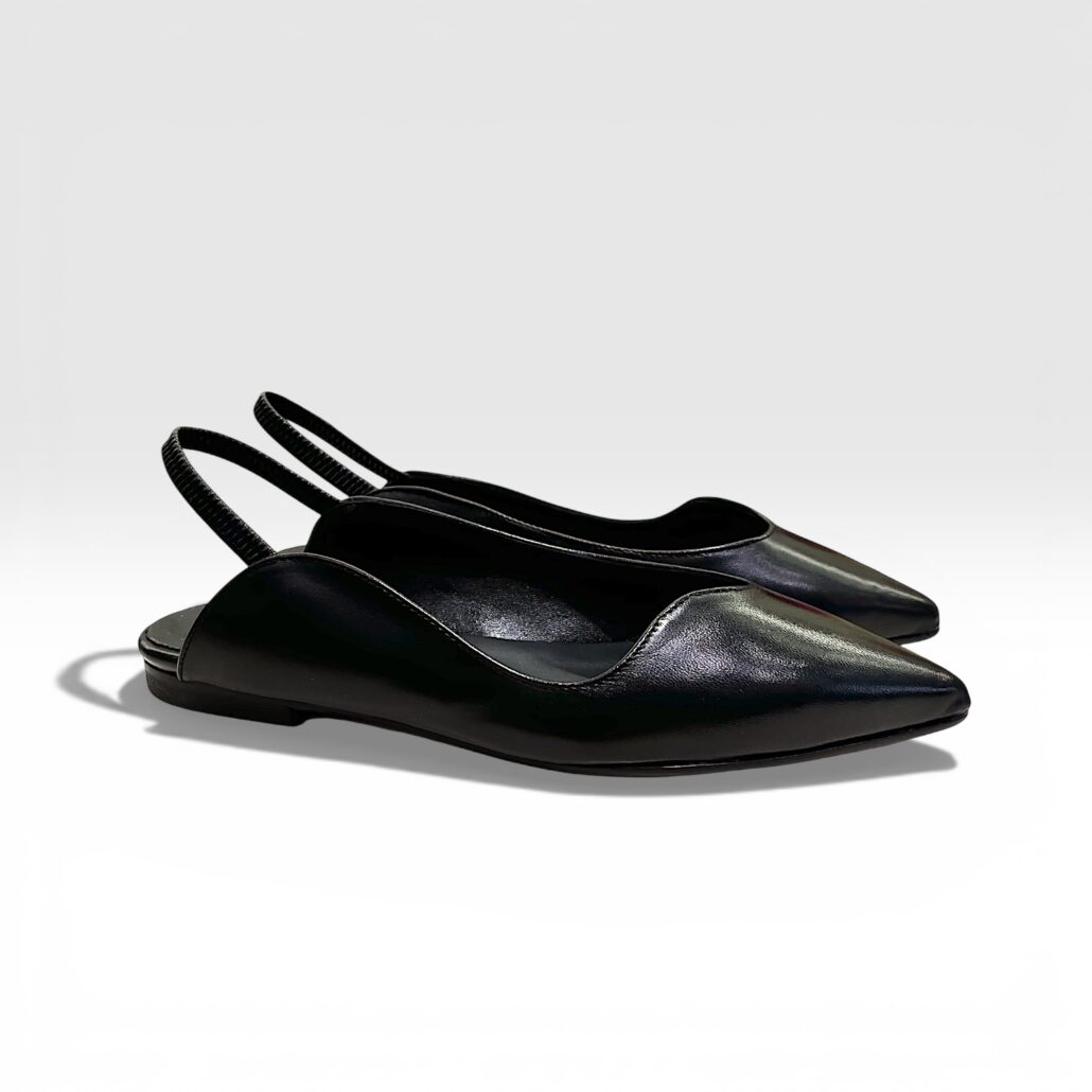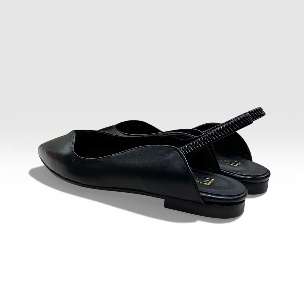 Slingback tacco 1 cm, fondo cuoio e soletta interna in vera pelle. Tomaia in morbida pelle nappata, cinturino elasticizzato e punta sfilata.