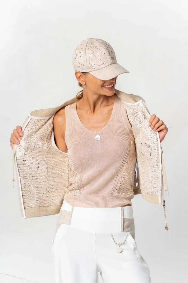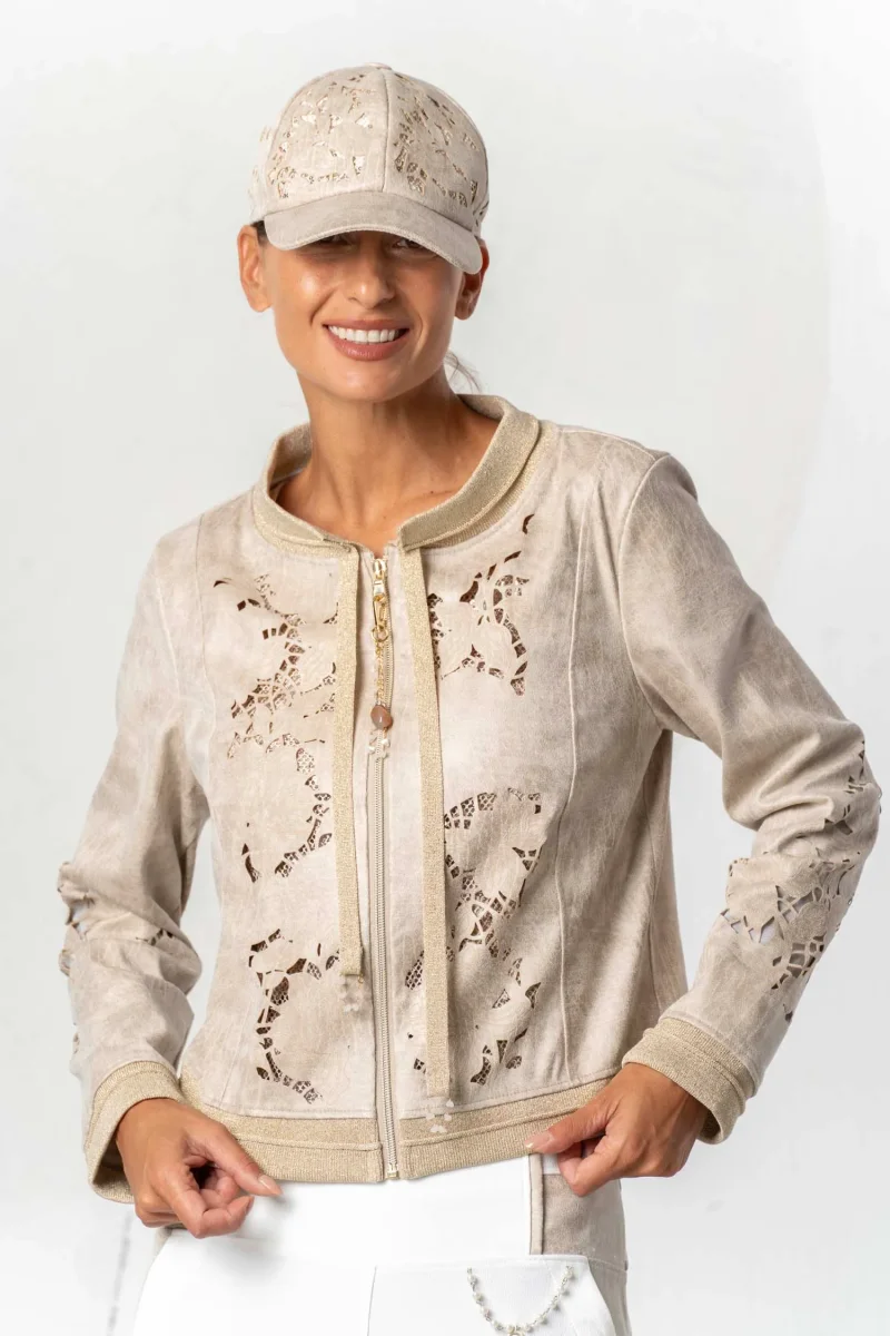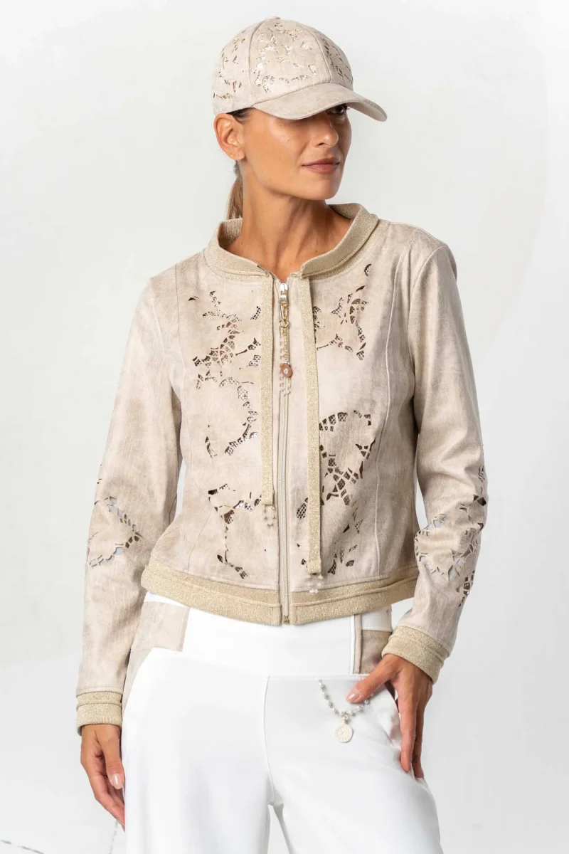 - Giacca corta traforata in mix di punti.