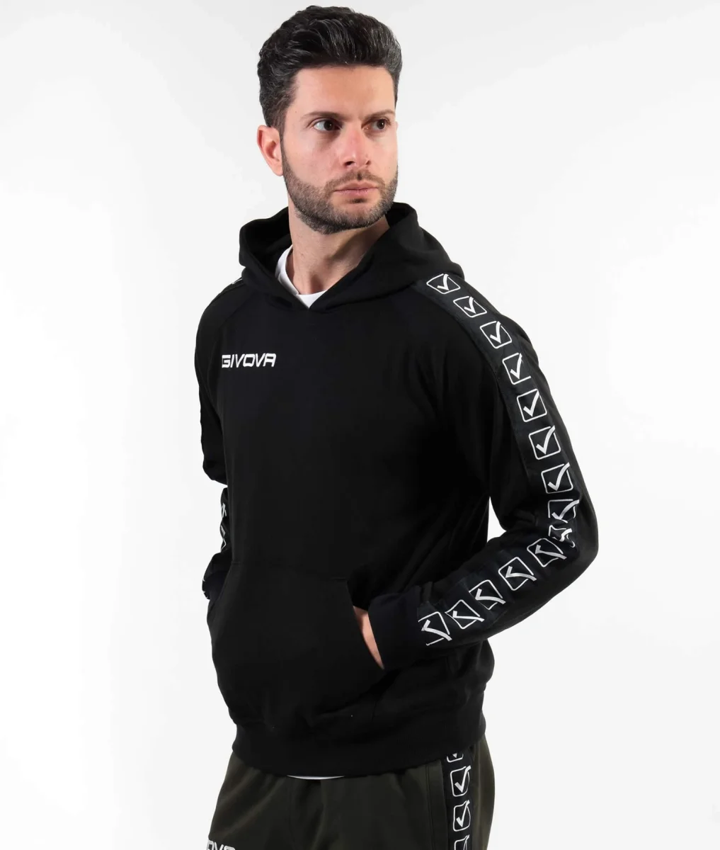 UOMO/DONNA/BAMBINO ALLENAMENTO, CORSA, DONNA, FELPA CON CAPPUCCIO, FELPA DONNA, FELPE UOMO, FOOTING, FREE TIME, PALESTRA, PASSEGGIO, RUNNING, TEMPO LIBERO, TRAINING, YOGA Tute, felpe e t-shirt dalla linea ricercata e di tendenza, la scelta giusta per sentirsi in forma e alla moda. Dal bianco al nero, attraverso tutte le sfumature di colore, con classe ed eleganza. Lo sport incontra lo stile con la nuova Linea Banda firmata Givova. Caratteristiche: 100% Cotone Terry; Logo ricamato; Tasche laterali; Polsini e girovita in costina; Tessuto in Felpa non garzata utilizzabile in ogni stagione.