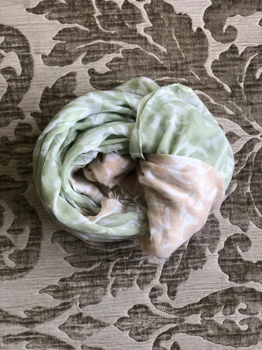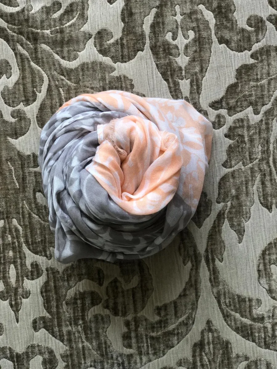 Foulard leggero con stampa floreale Perfetto per la primavera! Presenta una doppia colorazione: Rosa-grigio Verde-beige Panna-beige
