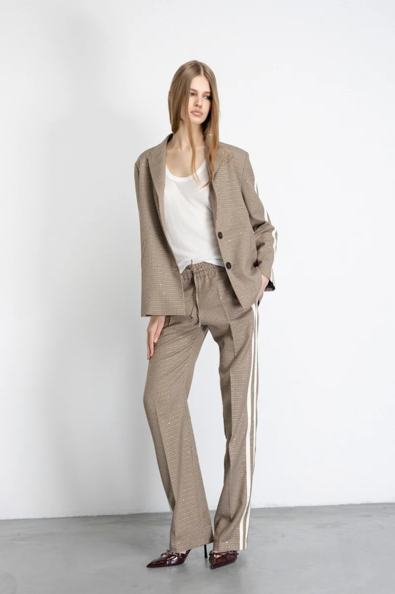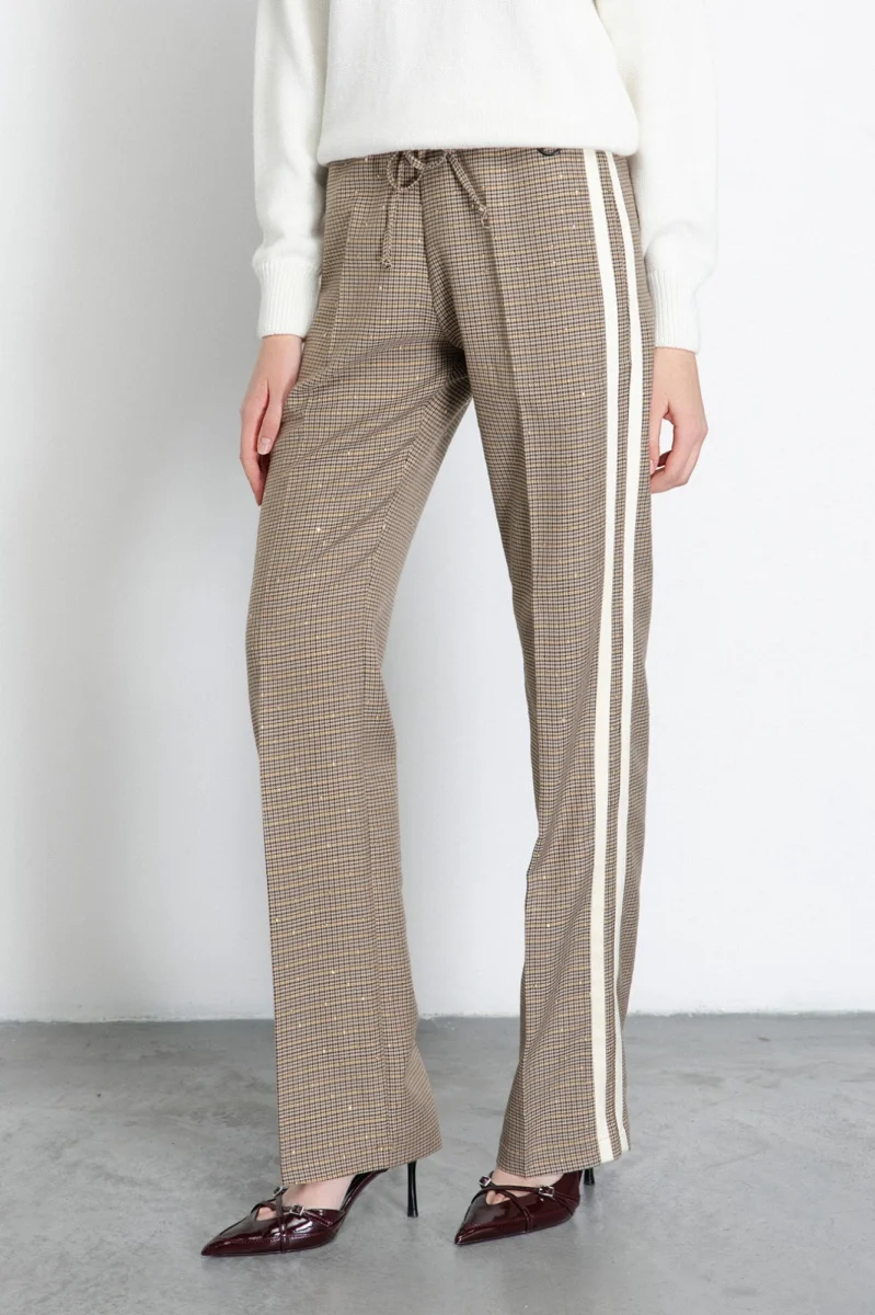 - Pantalone Dritto Morbido Con Laccetti In Vita E Bande Laterali • Cammello – Gaëlle Paris