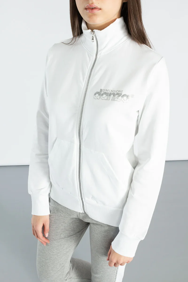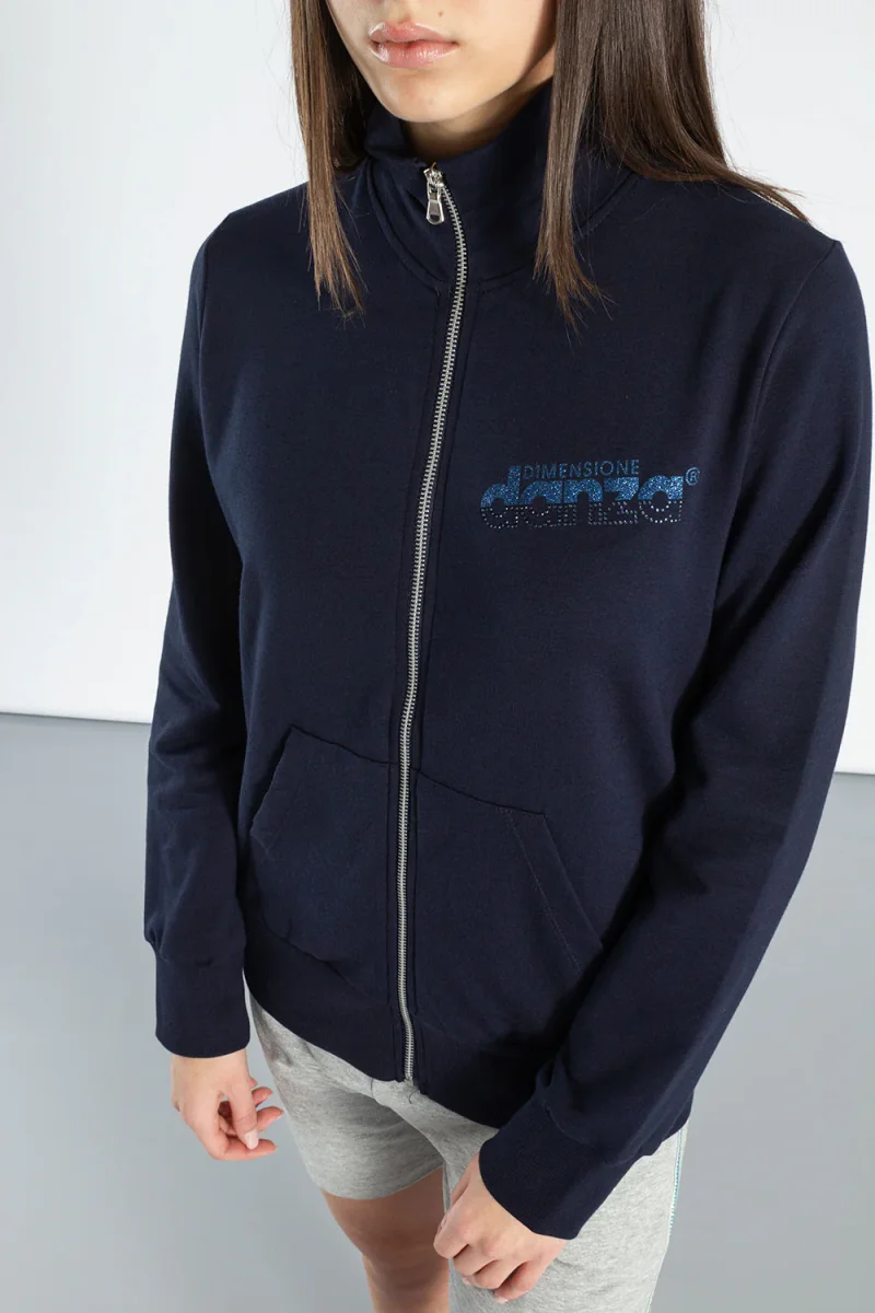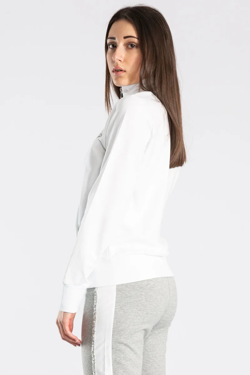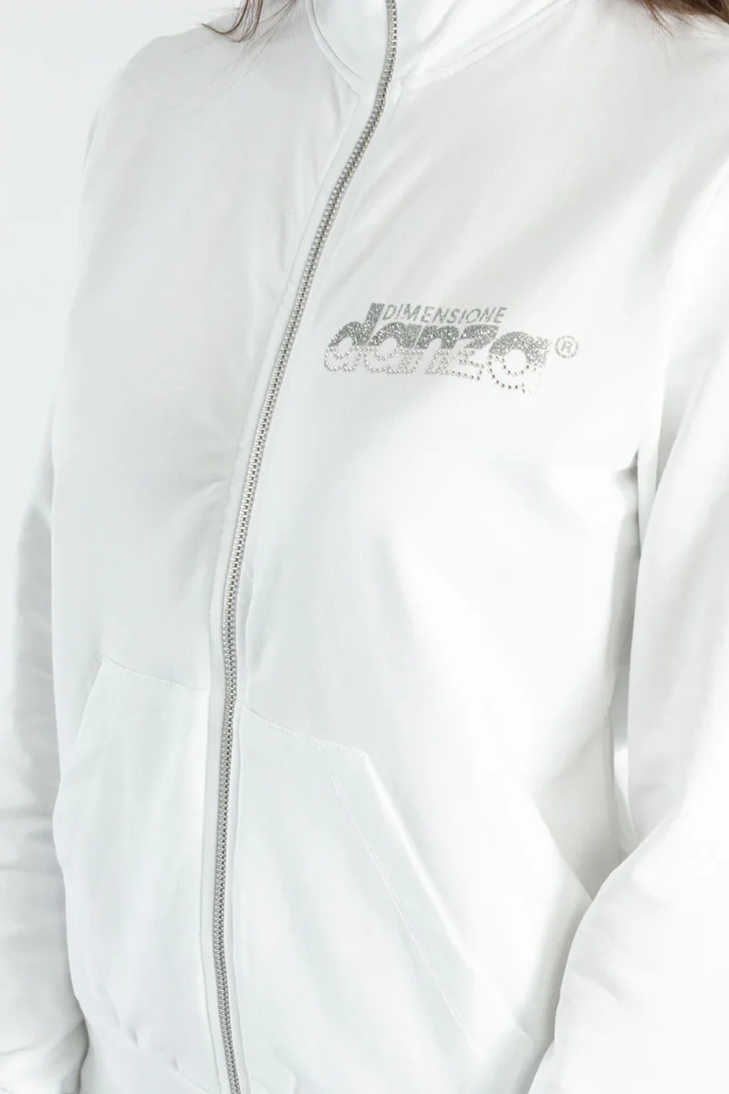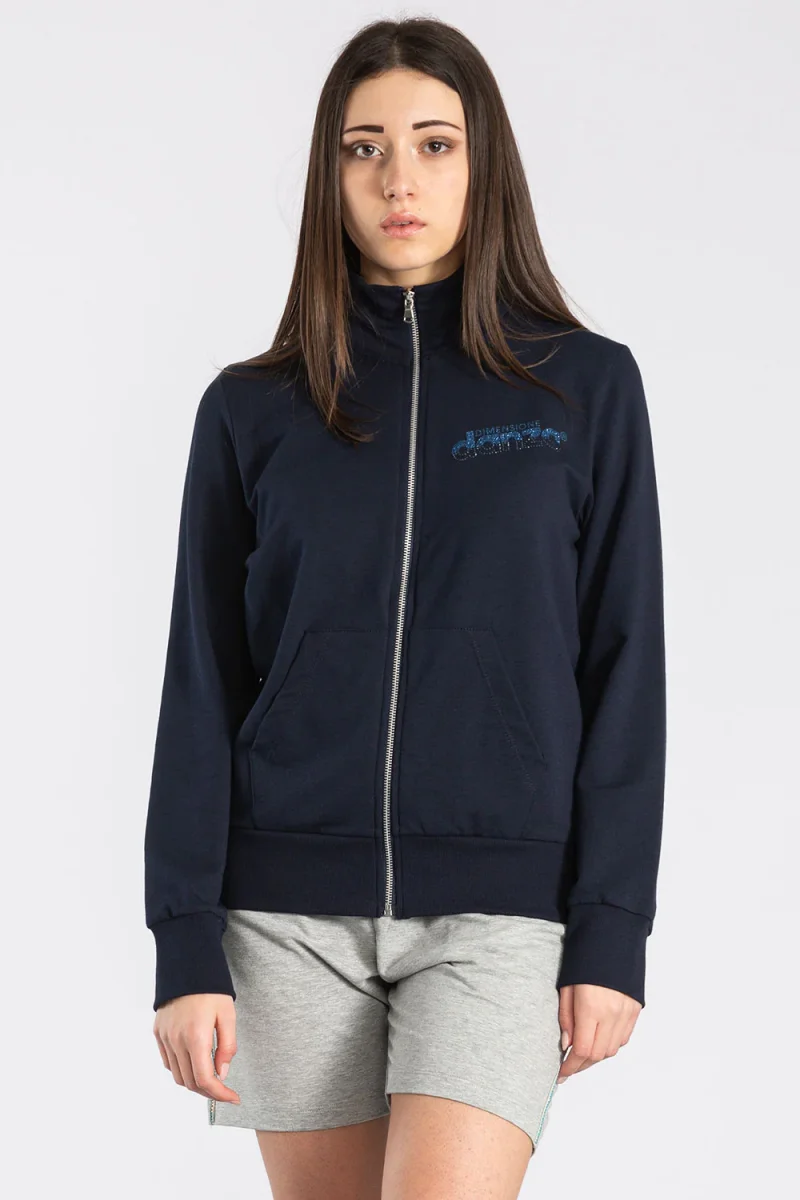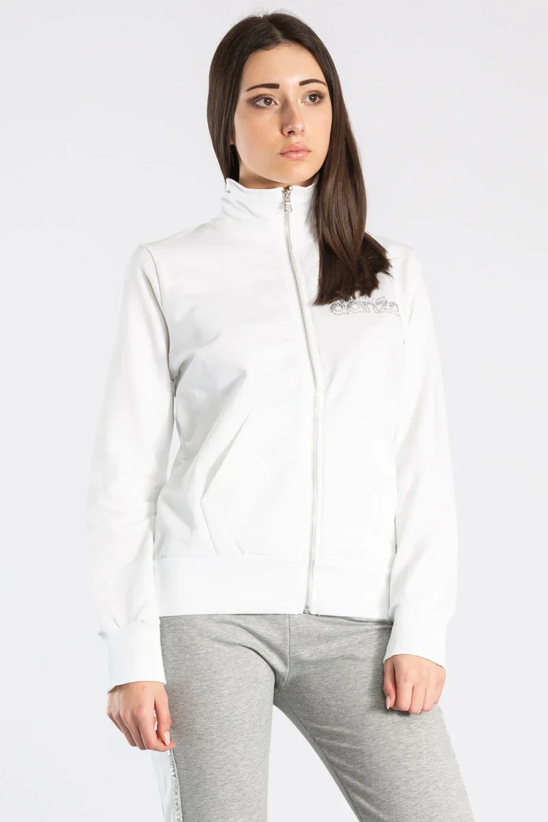 Giacca da donna in felpa di cotone con zip frontale e tasche a toppa. La stampa del logo in lurex aggiunge un tocco di eleganza a questo capo. La vestibilitร dritta valorizza la semplicitร di questa giacca, perfetta per un look casual ma ricercato.