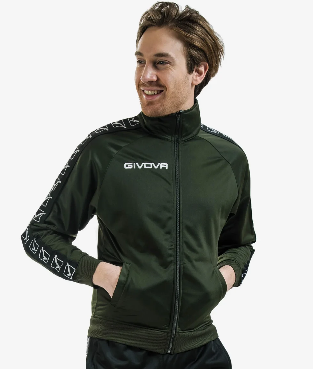 UOMO/DONNA/BAMBINO Tute, felpe e t-shirt dalla linea ricercata e di tendenza, la scelta giusta per sentirsi in forma e alla moda. Dal bianco al nero, attraverso tutte le sfumature di colore, con classe ed eleganza. Lo sport incontra lo stile con la nuova Linea Banda firmata Givova. Caratteristiche: 100% poliestere Tricot Triacetato; Tasche laterali; Logo ricamato; Giacca con zip intera; Fondo in costina; Polsini in costina; Il tessuto TRICOT è caratterizzato dalla sua versatilità che lo rende adatto sia per l’allenamento che per il tempo libero.