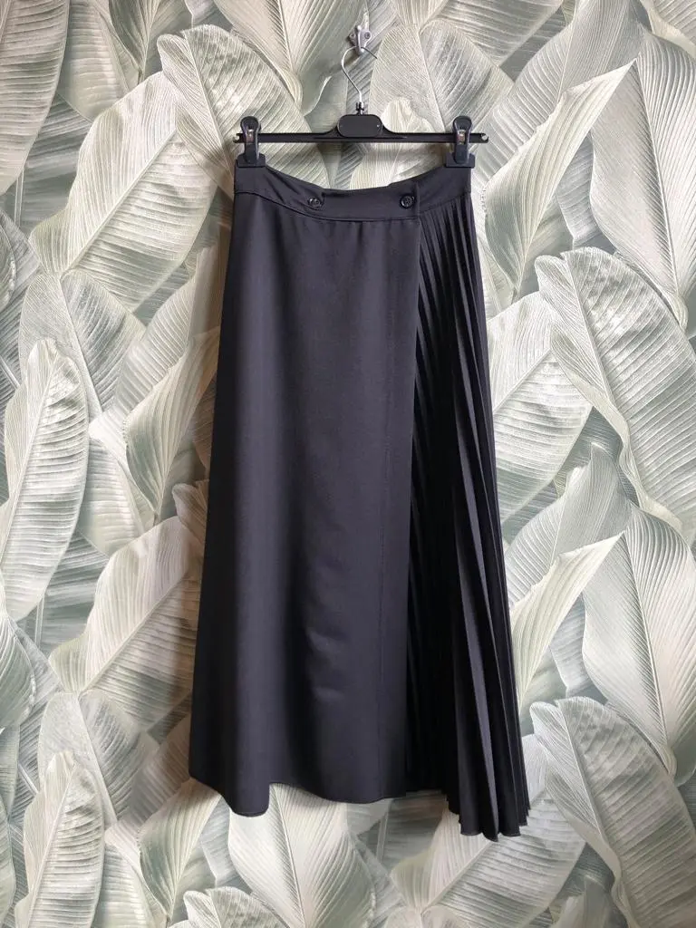 Gonna a portafoglio LUCY Chiusura con doppio bottone, plissettata su un lato Composizione: 78% poliestere 18% viscosa 4% elastane Disponibile nelle taglie dalla S alla L