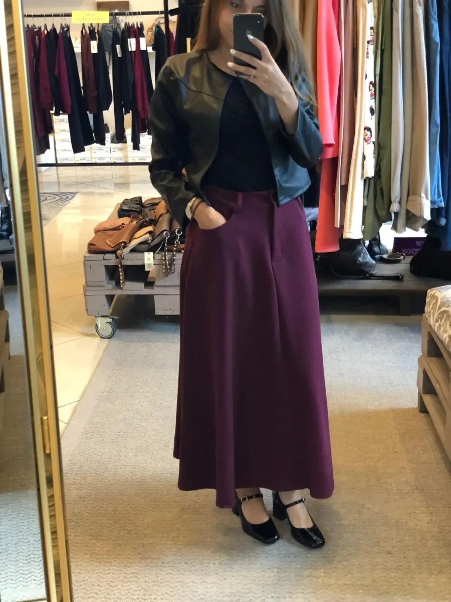 Gonna misto viscosa CLARA chiusura centrale con zip e bottoncino tessuto leggermente elasticizzato ottima vestibilità Lunghezza MIDI Disponibile nelle taglie S/M e M/L Made in Italy