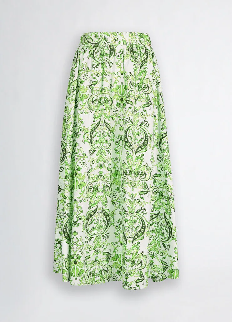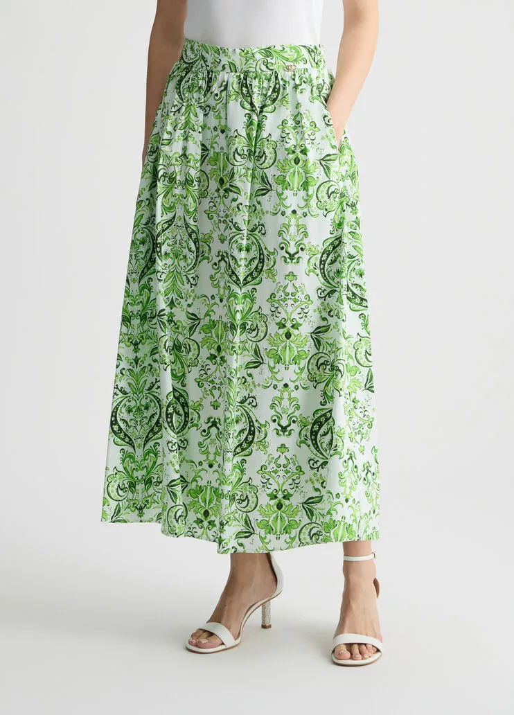 liujo Gonna ecosostenibile WA5173T4853M9530 liujo Gonna ecosostenibile WA5173T4853M9530 Gonna longuette bianca e verde Realizzata in popeline di cotone Stampa floreale all over Motivo a pieghe Cintone elastico in vita Lettering LJ in metallo Chiusura con zip sul fianco Made in Italy Codice web 53/65 Napoli Composizione 100% Cotone Visita la nostra pagina facebook boutique flair