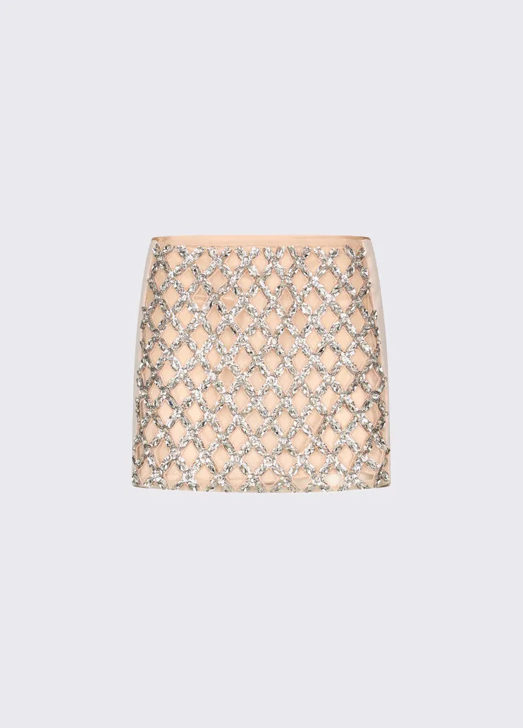 Chiusura con zip dietro - Realizzata in fluido cadi con un elegante trama gioiello, questa minigonna illumina i tuoi look nelle occasioni più speciali.