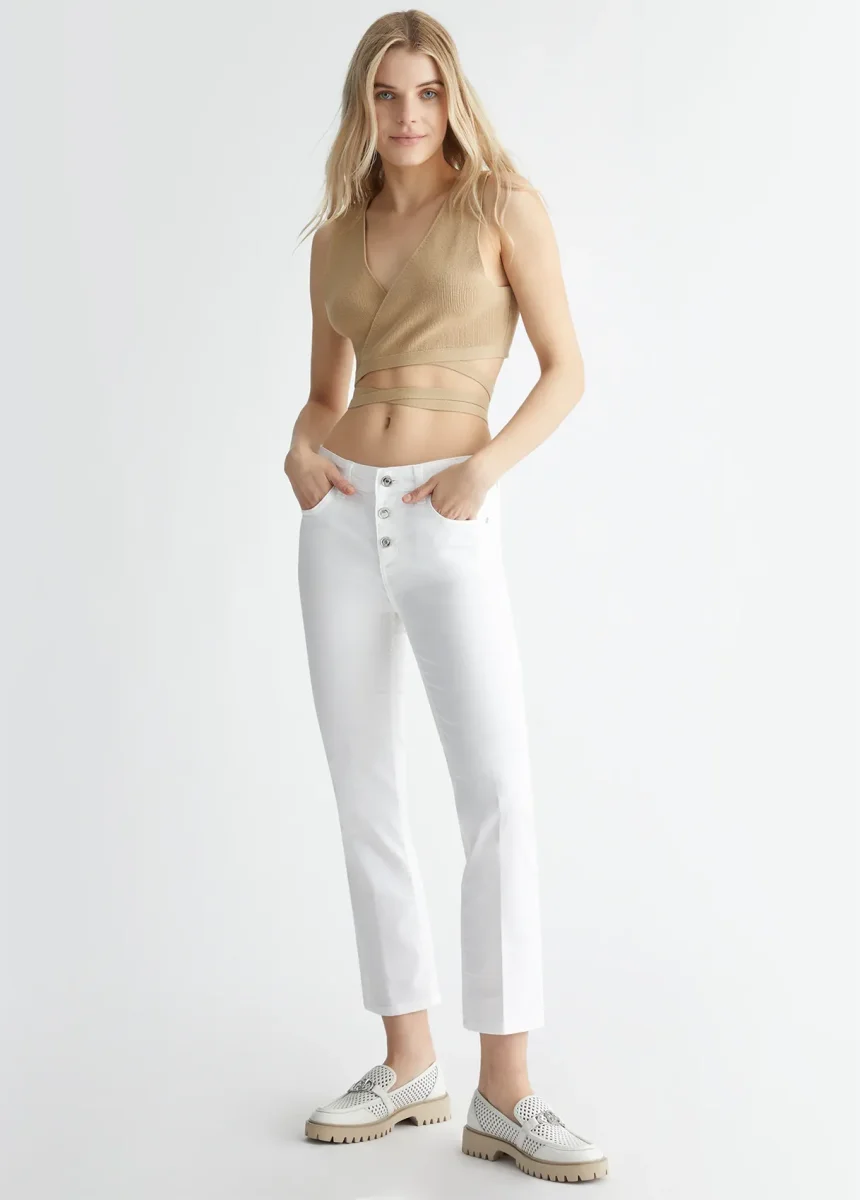- Pantaloni bianchi in cotone stretch
