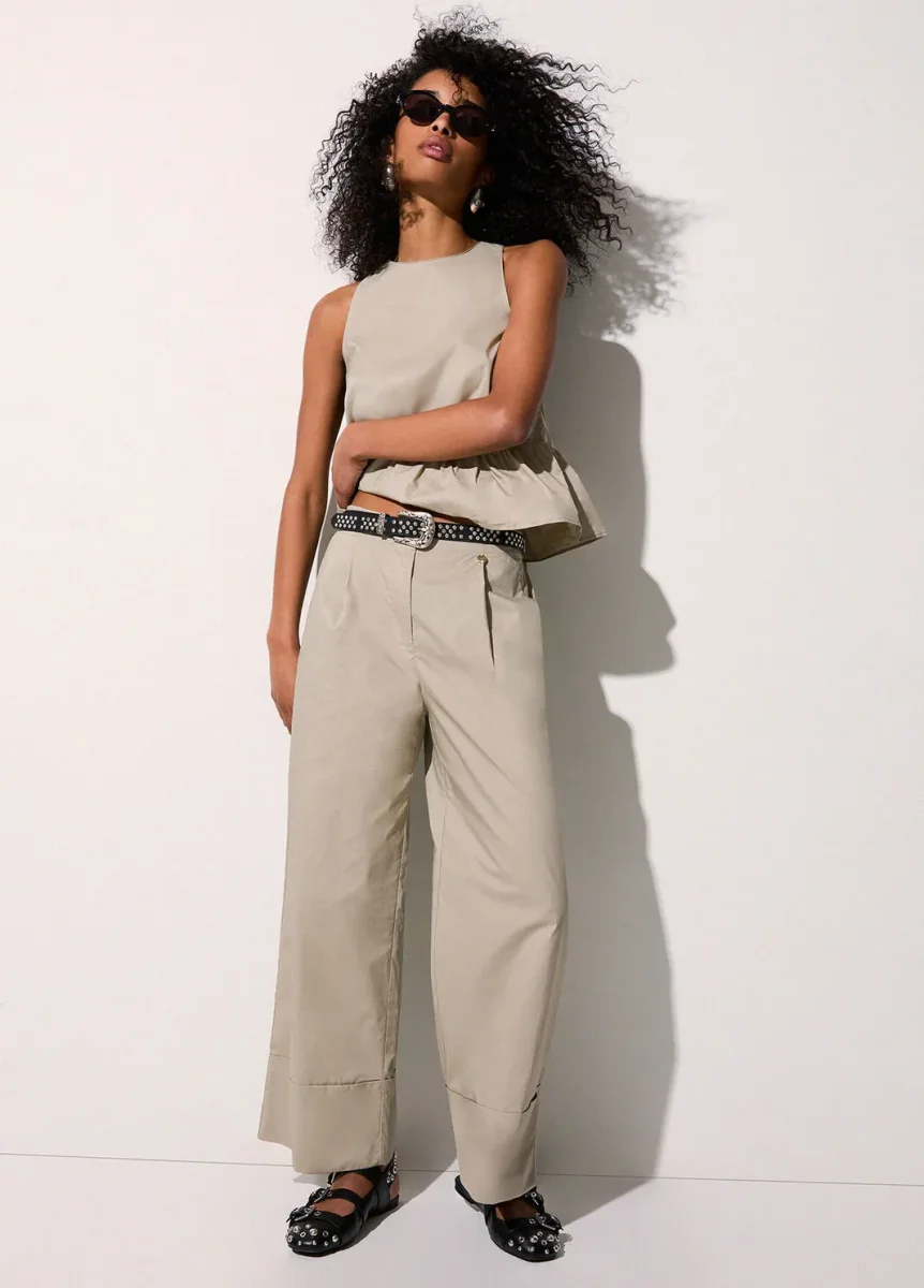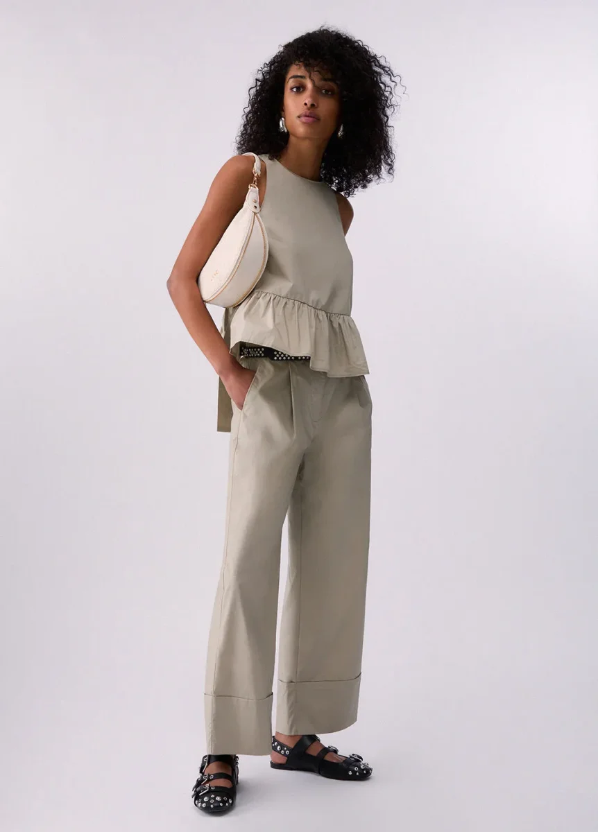 liujo pantaloni ecosostenibile WA6498T485361107 Pantaloni lunghi in popeline Pence sul davanti Design ampio e confortevole Chiusura con bottone e zip Gamba flare Lunghezza sopra la caviglia Codice web 50/61 Napoli Composizione 100% Cotone Visita la nostra pagina facebook boutique flair