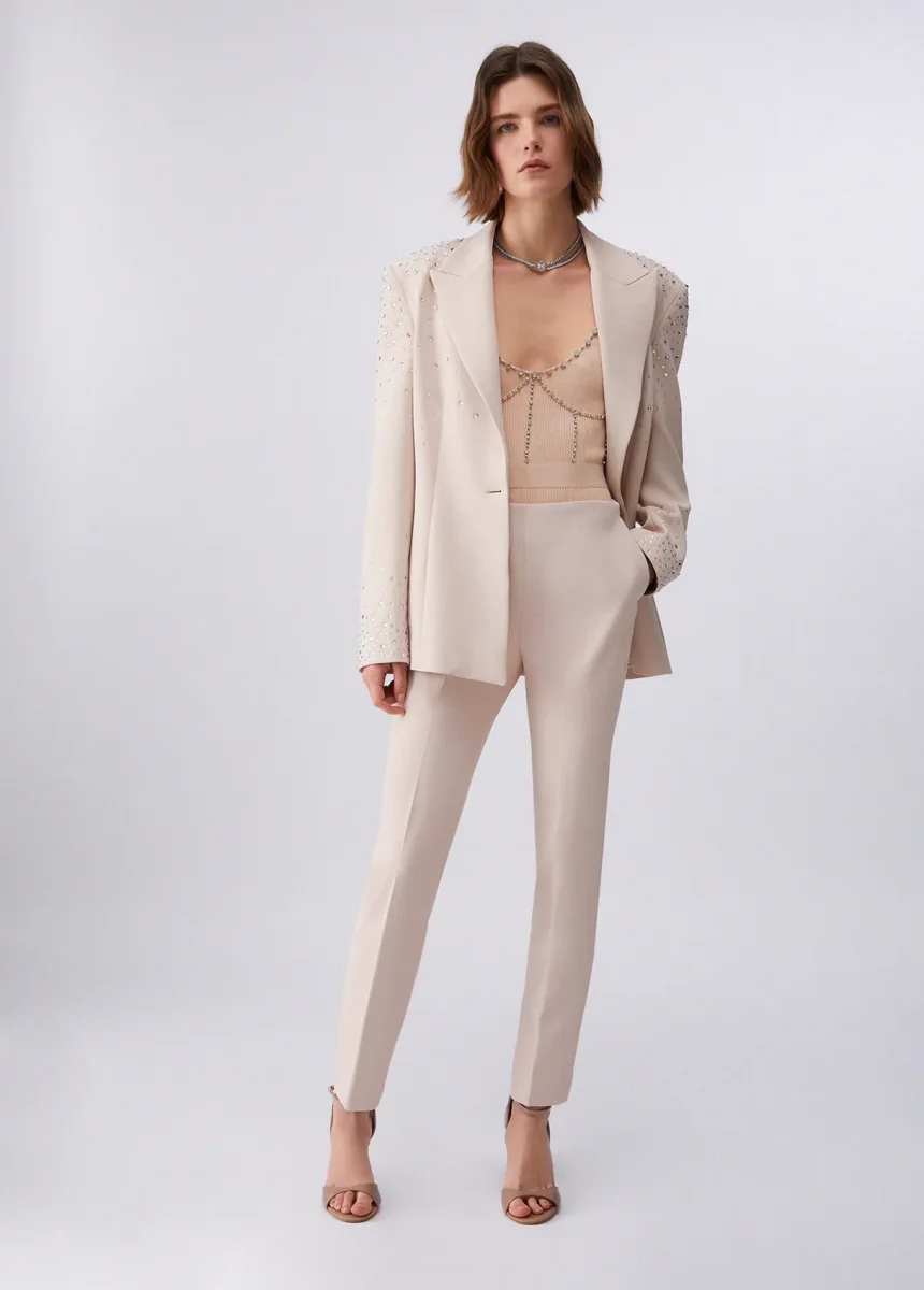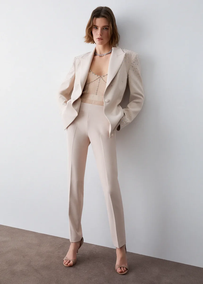 liujo pantaloni ecosostenibile PA6006T2527X0753 Pantaloni eleganti in cadi stretch Vita alta Gamba skinny Chiusura con zip sul lato Codice web 54/65 Napoli Composizione 95% Poliestere, 5% Elastan Visita la nostra pagina facebook boutique flair