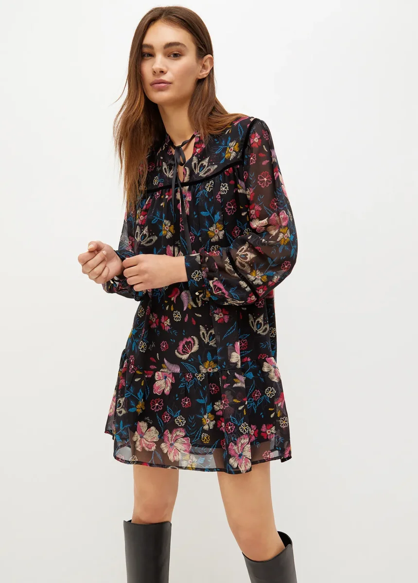 liujo vestito georgette WF2214T3261R9694 liujo vestito georgette WF2214T3261R9694 Vestito in georgette Stampa floreale all over Collo alla coreana con motivo a V e fiocco Maniche lunghe Polsi con bottone Logo in metallo sul retro Balza al fondo Codice web 93 Napoli Composizione 100% Poliestere Visita la nostra pagina facebook boutique flair