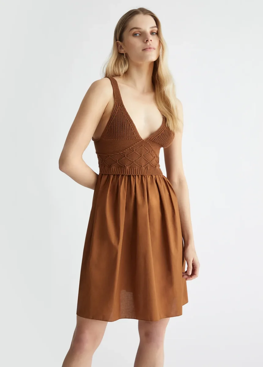 liujo vestito ecosostenibile MA4071MA23A81027 liujo vestito ecosostenibile MA4071MA23A81027 Abito lungo marrone Realizzato in maglia di cotone Scollo a V Sorretto da spalline Fiocco che si annoda sul retro Gonna a balze in popeline Made in Italy Codice web 80/98 Napoli Composizione 100% cotone Visita la nostra pagina facebook boutique flair