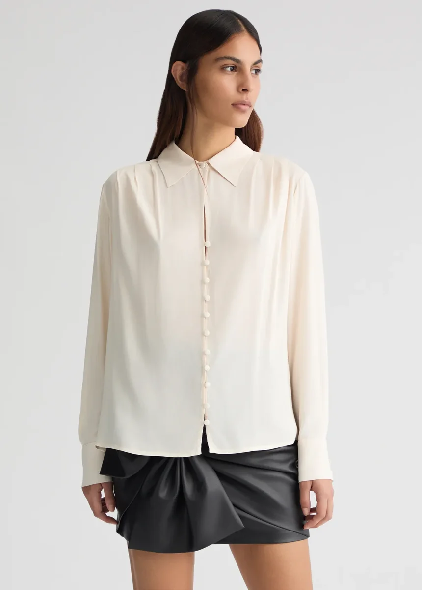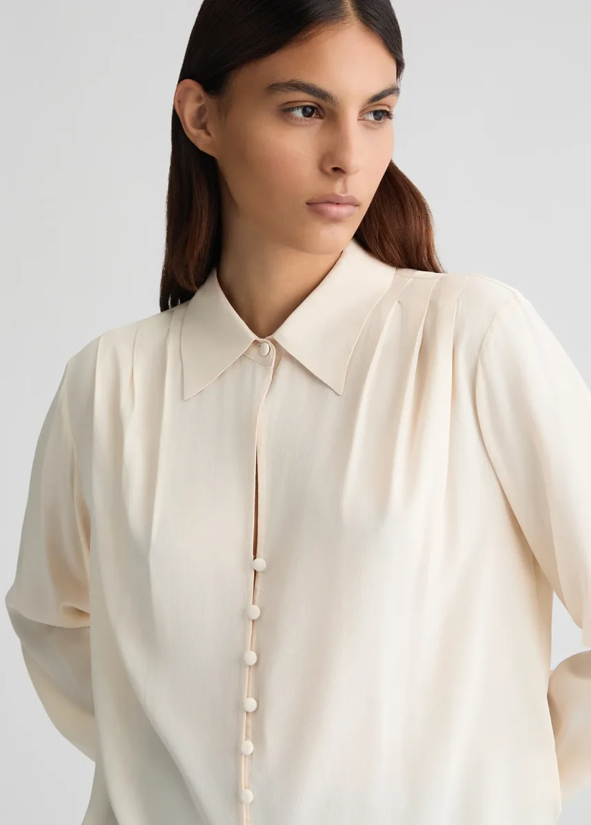 - Blusa avorio in crêpe de chine