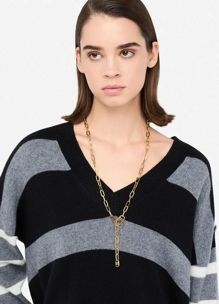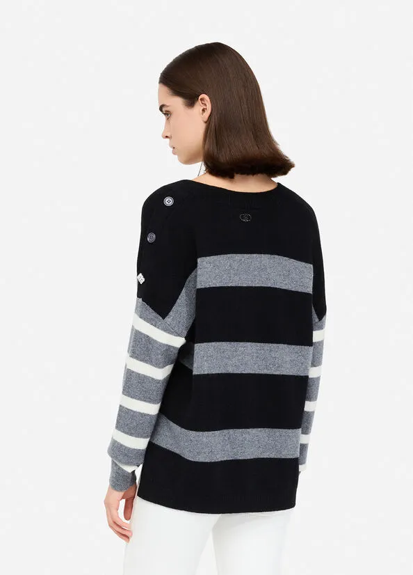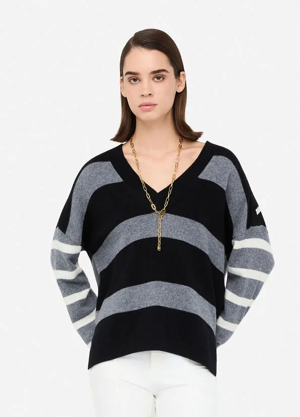 liujo maglia ecosostenibile MF5128MS009C3819 Maglia 100% lana Fantasia a righe Scollo a V Bottone gioiello sulla spalla Prodotto “Liu Jo Better” Codice web 58/70 Napoli Composizione 100% lana Visita la nostra pagina facebook boutique flair