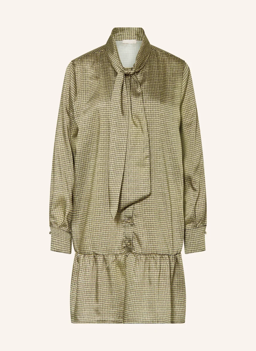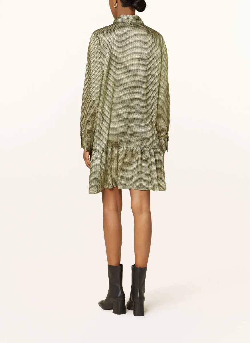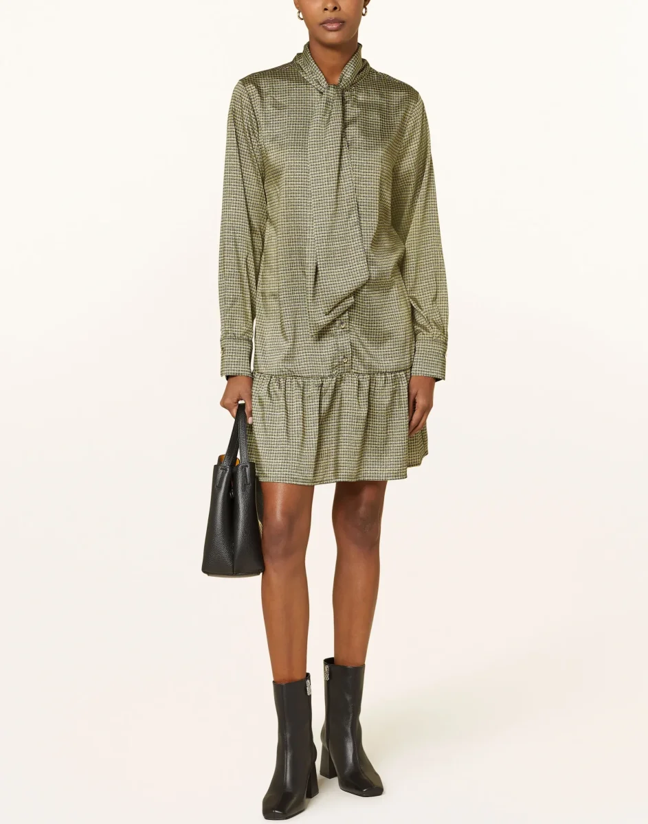liujo vestito ecosostenibile WF4208T1140N9533 Vestito chemisier in raso Stampa all over Collo a foulard Maniche lunghe Polsi con bottone Logo in metallo sul retro Balza al fondo Chiusura con bottoni Codice web 69/84 Napoli Composizione 100% Poliestere Visita la nostra pagina facebook boutique flair