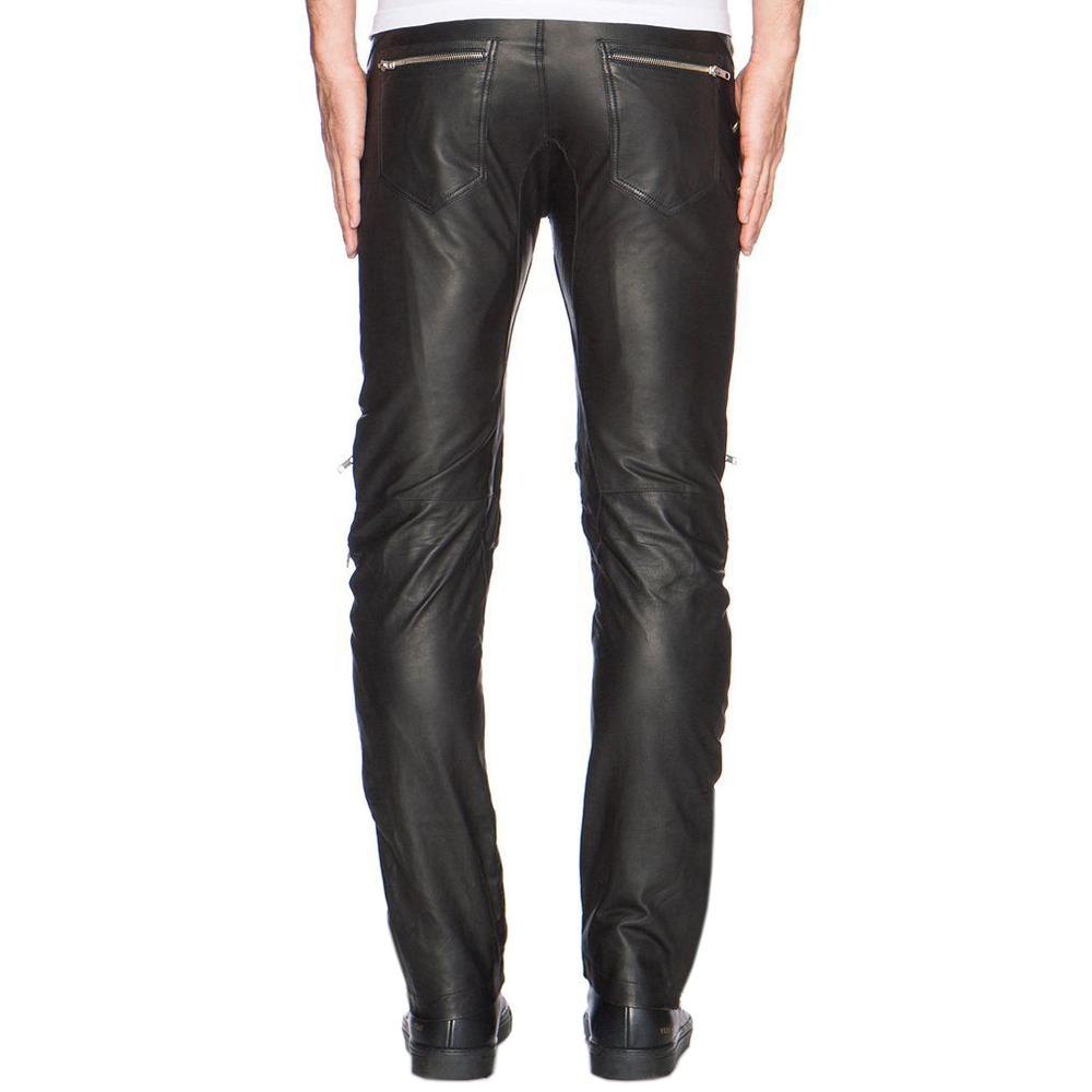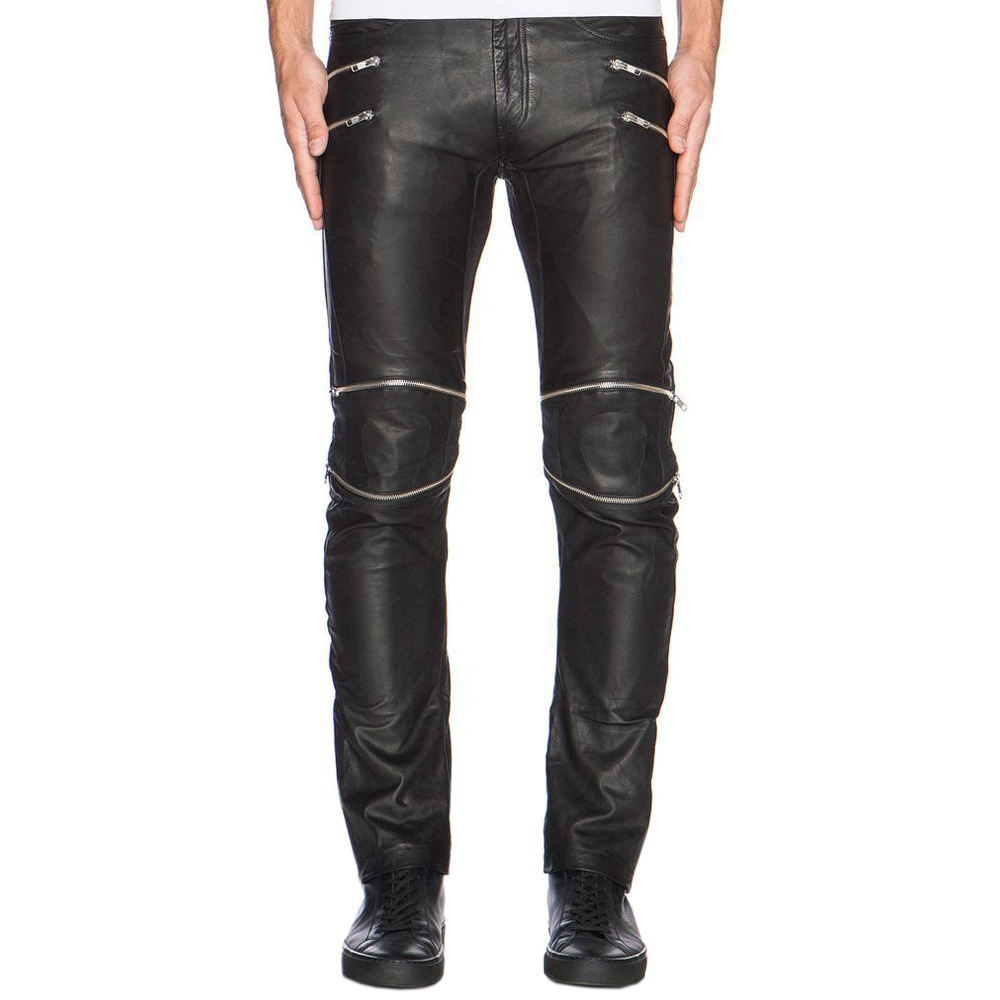 Pantalone Biker da Uomo in Vera Pelle Nera