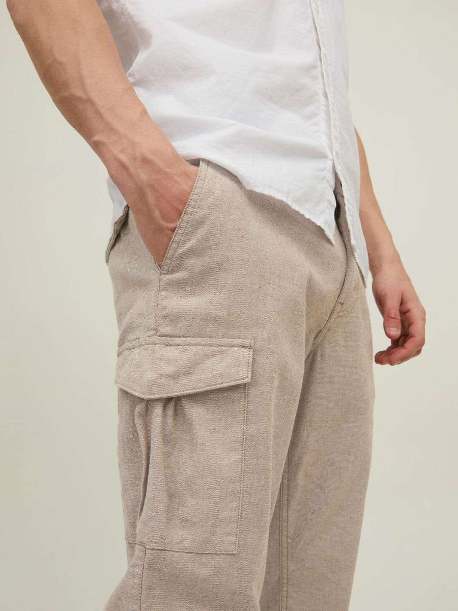 Pantalone Beige con tasche laterali Jack & Jones modello JPSTOLLIE JJLINEM. Collezione Primavera/Estate 2022.