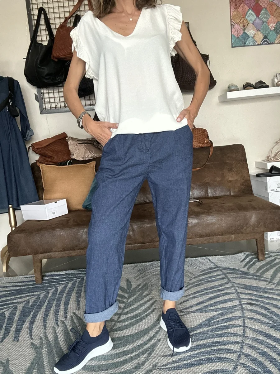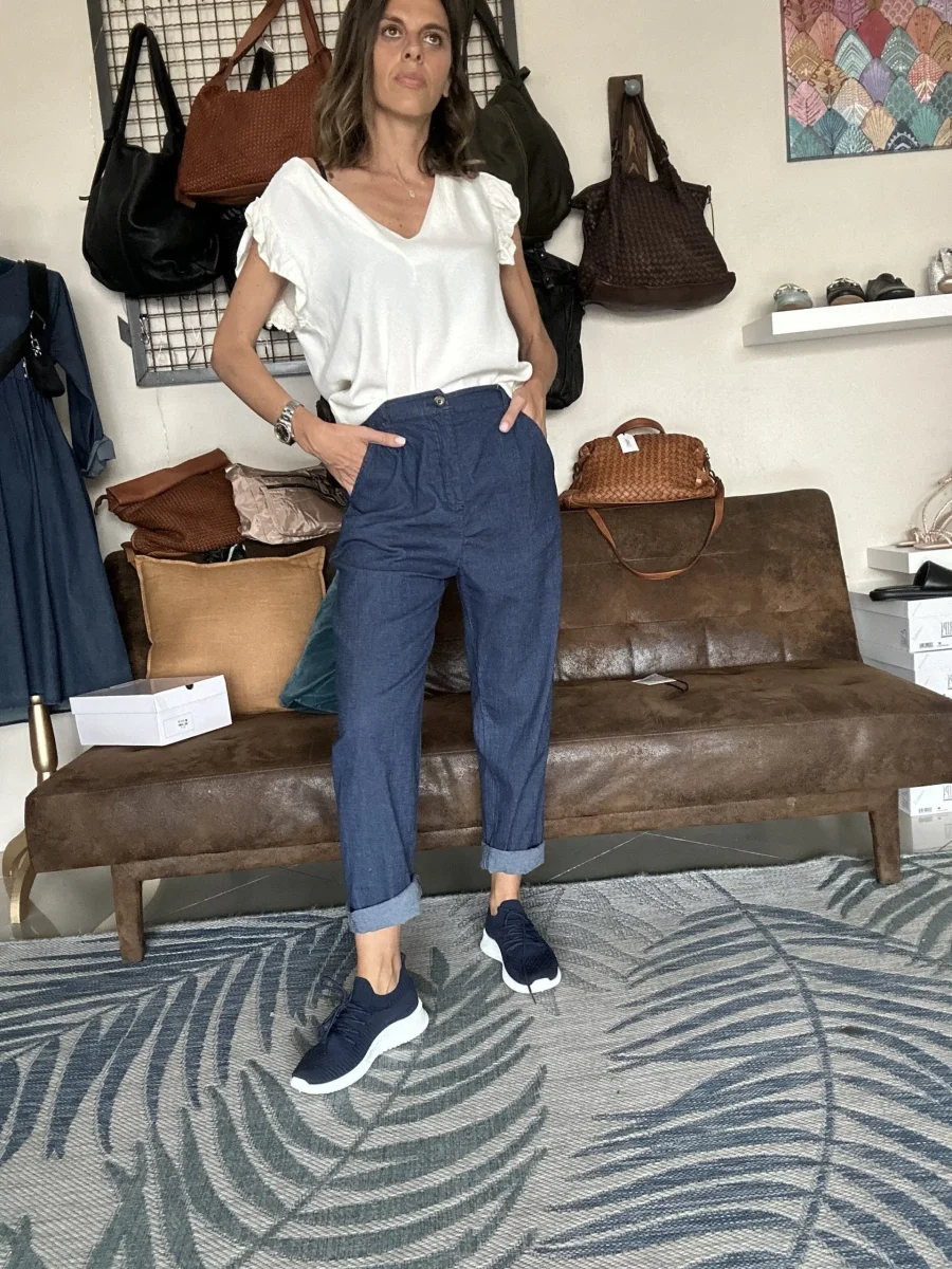 Pantalone GIO in tessuto leggero Composizione” 98% cotone 2% elastane Ottima vestibilita’.