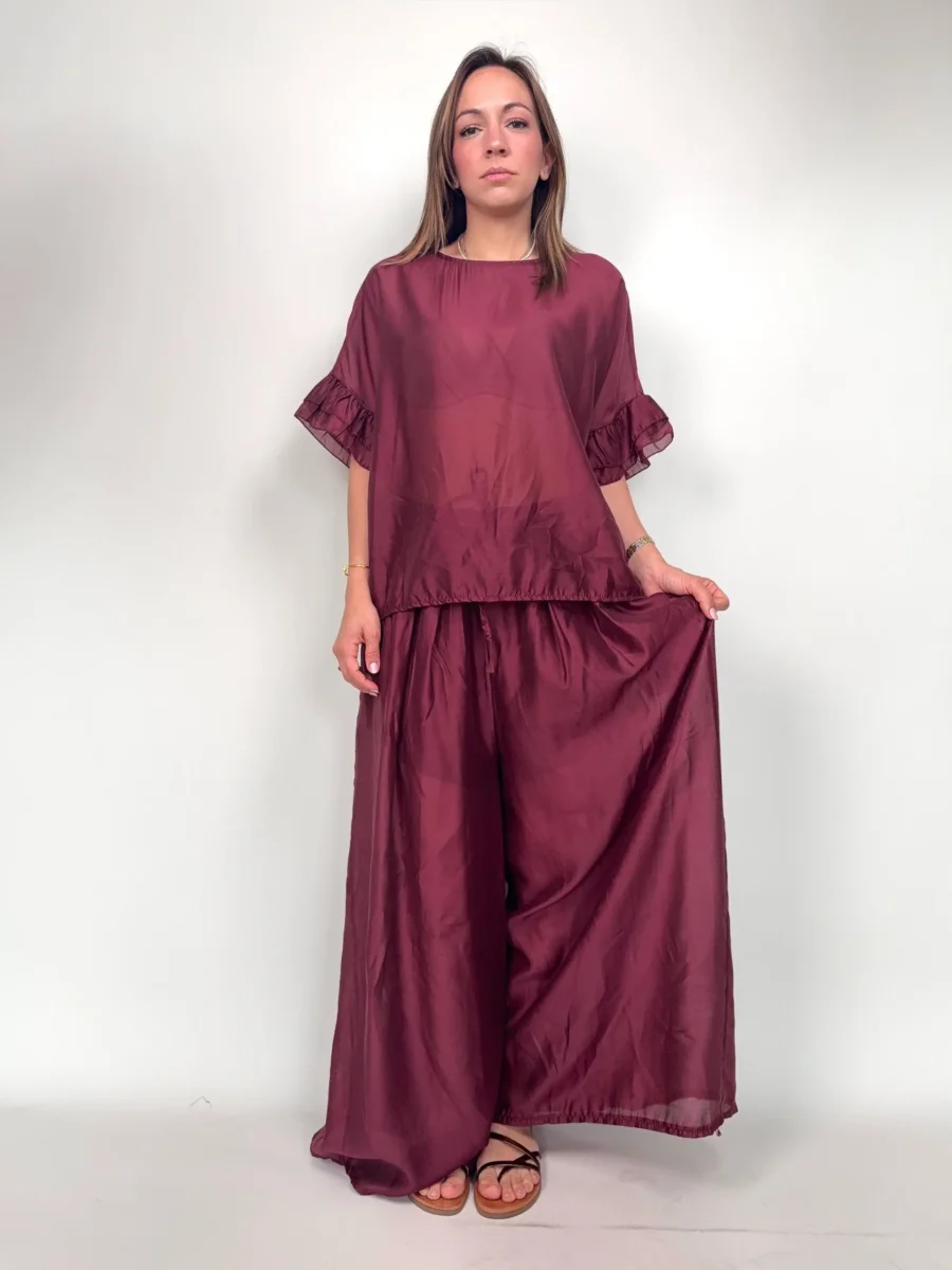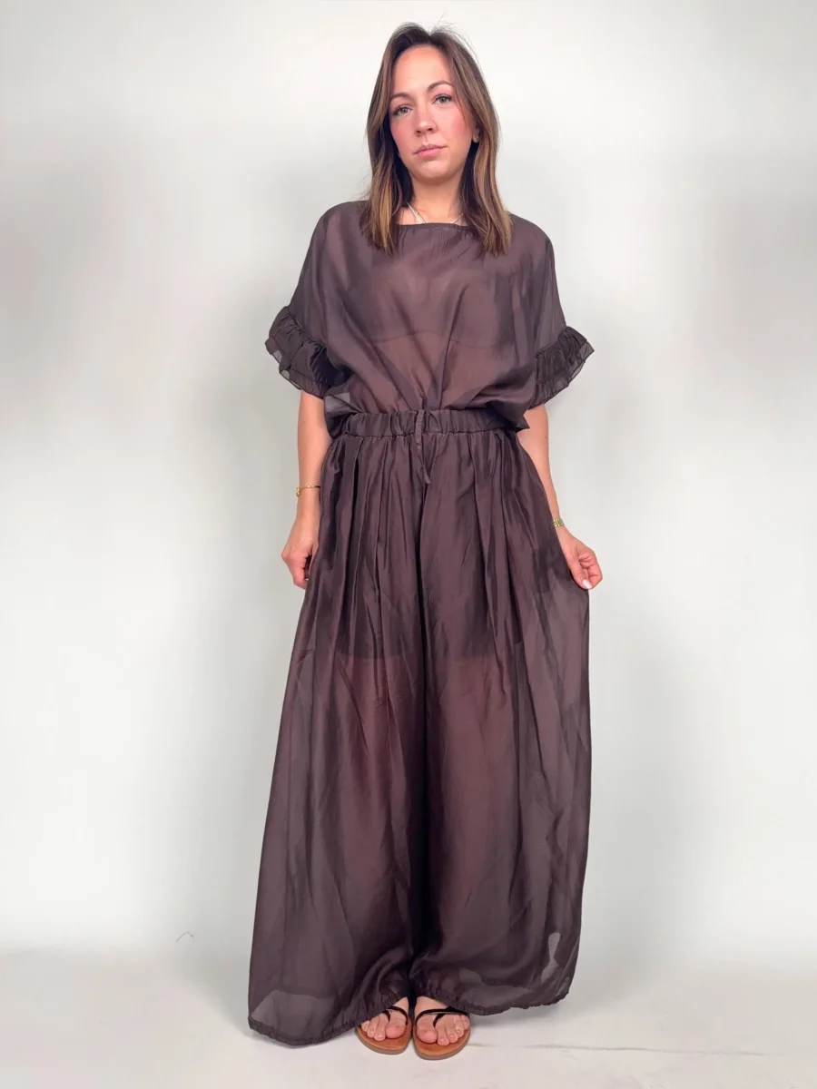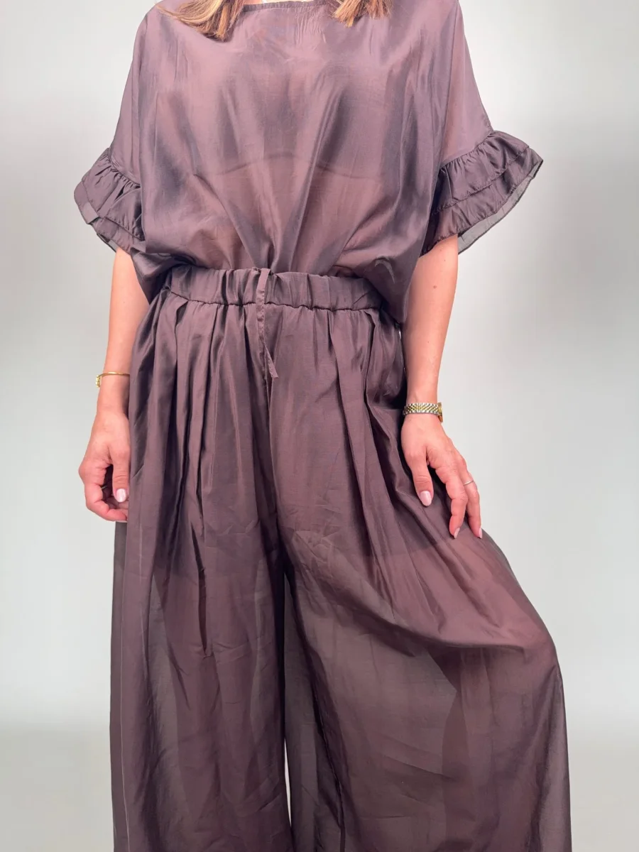 Pantaloni leggere in Tencel AFRICA Modello ampio, elastico in vita Foderata la parte del pantaloncino Taglia unica, veste fino una 46/48 Composizione 85% tencel 15% poliestere